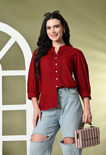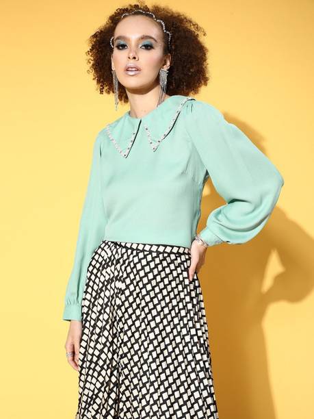 Meesan Casual Printed Women Dark Blue, Pink, Dark Green Top