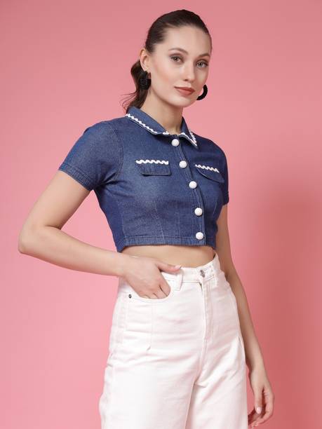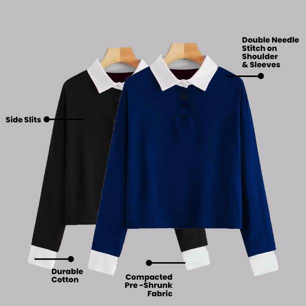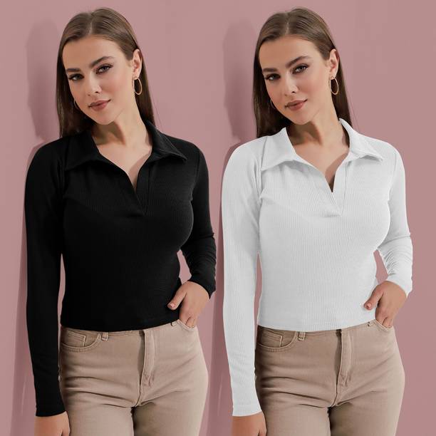 FARBOT Casual Solid Women Black, Dark Blue Top