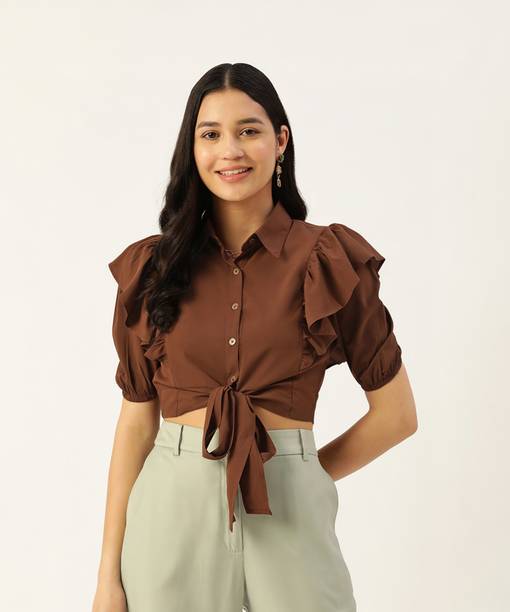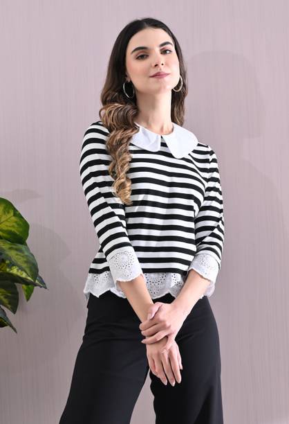 Miss Chase Casual Half Sleeve Solid Women Black Top