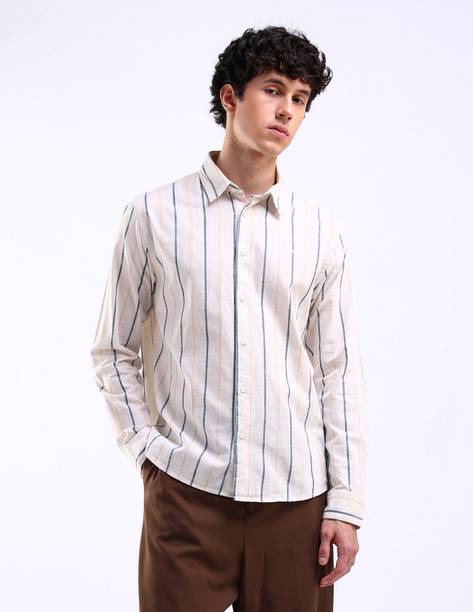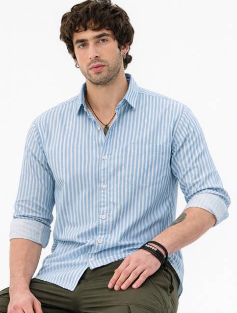 Amp up your style by adding shirts with collars to your wardrobe collection. These products seamlessly blend sophistication with versatility. Whether you're heading to the office or a formal event, these shirts for men can effortlessly elevate your style. You can pair them with jeans, trousers, and other bottomwear to create various looks. Brands that sell men's shirts with collars online are Highlander, U.S. Polo Assn., The Indian Garage Co., Mufti, Wrogn, and others. Layering collared shirts with a blazer or a sweater can add depth and dimension to your outfit, making it suitable for various settings. These shirts are available in different collar options like built-up, button-down, club, curved, cut-away, and others. If you are looking for a versatile option, Chinese collar shirts can be a suitable choice for you for both casual and formal events. These collar shirts for men come in a vast array of patterns and colours to suit different styles. From classic solid hues to bold patterns, there's a collared shirt for every mood and occasion. Shop for shirts with collars online that can be a valuable addition to your closet, and make a secure payment to get doorstep delivery.