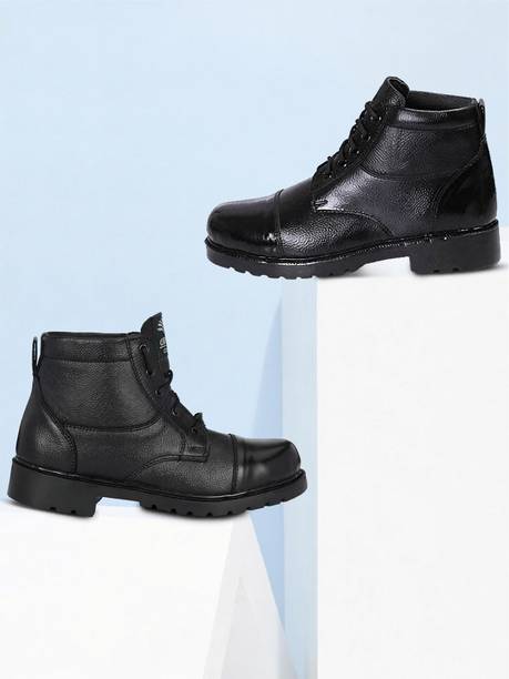 Combat boots are sturdy, rugged shoes designed to offer safety, along with comfort. They are designed to sustain harsh conditions and are typically meant to be worn in tough environmental conditions that may be present across different terrains. These boots are stiff and sturdy, which makes them an ideal choice for people who go on hikes and treks quite often. They can also be a suitable footwear option if you work in hazardous conditions. Since these boots are generally worn for long periods of time, they are built in a manner that can provide adequate comfort to your feet. They are designed to readily face any external impact to keep your feet safe and well-protected. They also aid in helping you walk freely over different surfaces and provide ample traction and impact resistance. Made out of rigid materials like leather, these boots offer high durability. They also offer an excellent grip to help avoid slipping. You can find the latest combat boots from the comfort of your home by shopping across online stores. Choose from brands like KnockBox, Para Commando, Le Fore, and Allen Cooper. Select the suitable shoes depending on your needs and shop for combat boots online and get them delivered to your home. The information you are reading has been last updated on 19-Jan-26.