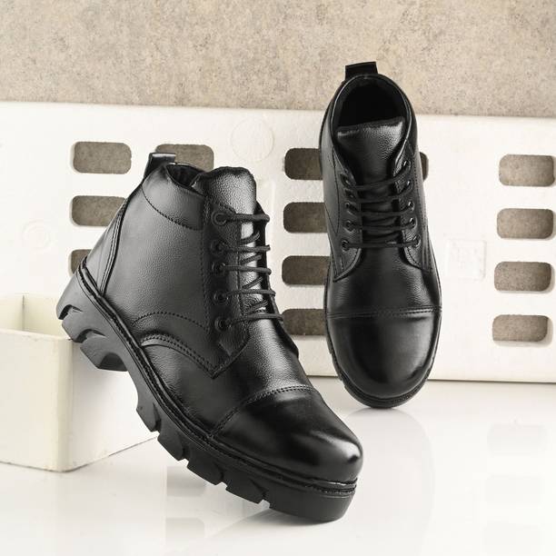 Combat boots are sturdy, rugged shoes designed to offer safety, along with comfort. They are designed to sustain harsh conditions and are typically meant to be worn in tough environmental conditions that may be present across different terrains. These boots are stiff and sturdy, which makes them an ideal choice for people who go on hikes and treks quite often. They can also be a suitable footwear option if you work in hazardous conditions. Since these boots are generally worn for long periods of time, they are built in a manner that can provide adequate comfort to your feet. They are designed to readily face any external impact to keep your feet safe and well-protected. They also aid in helping you walk freely over different surfaces and provide ample traction and impact resistance. Made out of rigid materials like leather, these boots offer high durability. They also offer an excellent grip to help avoid slipping. You can find the latest combat boots from the comfort of your home by shopping across online stores. Choose from brands like KnockBox, Para Commando, Le Fore, and Allen Cooper. Select the suitable shoes depending on your needs and shop for combat boots online and get them delivered to your home. The information you are reading has been last updated on 07-Mar-26.