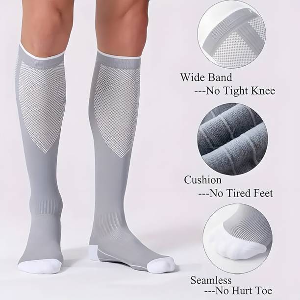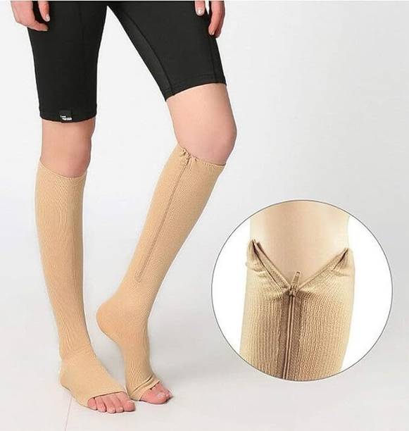 Compression socks provide relief to your aching feet or legs and help you tackle issues like spider veins or varicose veins. Browse and explore a wide range of compression socks available online from brands such as Just Rider, Shop Stoppers, AMR ENTERPRISE, RC. ROYAL CLASS, Skudgear and many more. These options are suitable for men and women of all ages. The fabric used to manufacture these socks are cotton, acrylics, polyesters, lycra, neoprene, nylon, spandex, etc., or a combination of them. The snug-fitting socks offer comfort and are breathable. Explore socks of varying lengths like low, ankle, knee-high, calf, peds, over the knee, thigh-high, etc. You can choose them in single-pack or multi-packs in a plethora of colours and designs. You can browse and zero in on the pattern and prints of your choice like geometric, laser-cut, perforations, polkas, checks, blocks, self-designs, and stripes. Some of these close with a zip and provide you with a real snug fit. You can add stockings for varicose veins to your shopping cart and buy them from the comfort of your home. You can check out reviews before you place your order. The information you are reading has been last updated on 16-Dec-25.