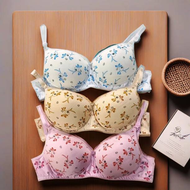 Underwear made of cotton is one of the most popular types worn by women. A cotton bra is very comfortable to be worn in all seasons and is available in a variety of patterns. The types of bras accessible include sports, tube, cami, bralettes, maternity, minimizer, push-up, plunge balconette, full coverage, etc. The bras offer comfort, and the cotton fabric provides sufficient ventilation. The breathable fabric also does not allow any skin infections to perpetuate easily. Scroll through the different size options available in bras and choose a suitable size before adding the product to the cart. Check and compare the prices of the bras before checking out and placing the order. There are several colour options and appealing designs from which to choose. Explore the various designs like embellished, animal print, floral print, embroidered, striped, lace, colour block, printed, self-design, solid, etc., available in bras and bralettes. Some bras are also available with cotton blends, such as cotton with hosiery, stretch cotton, lycra blends, elastane with cotton, etc. Check the care instructions for the bras before buying them online. Buy the cotton bra varieties online from brands like Body Best, Albora, Nutex Sangini, Amante, Daisy Dee, and more.