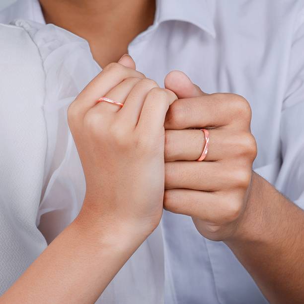 ELITE CREATION Adjustable Couple Rings Valentine Gifts Couple Rings for Girls and Boys Valentine Day Propose Your Girlfriend Brass Cubic Zirconia Gold Plated Ring