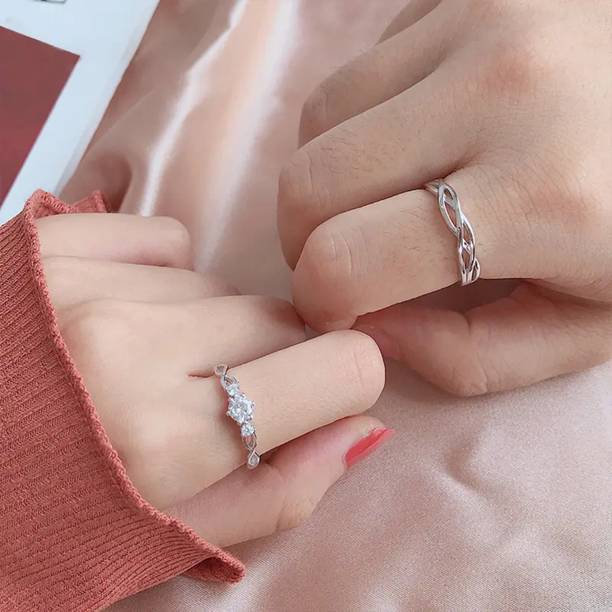 Nilu's Collection Adjustable Couple for lovers & valentine Gift Set for Men and Women Alloy, Zinc Sterling Silver Plated Ring
