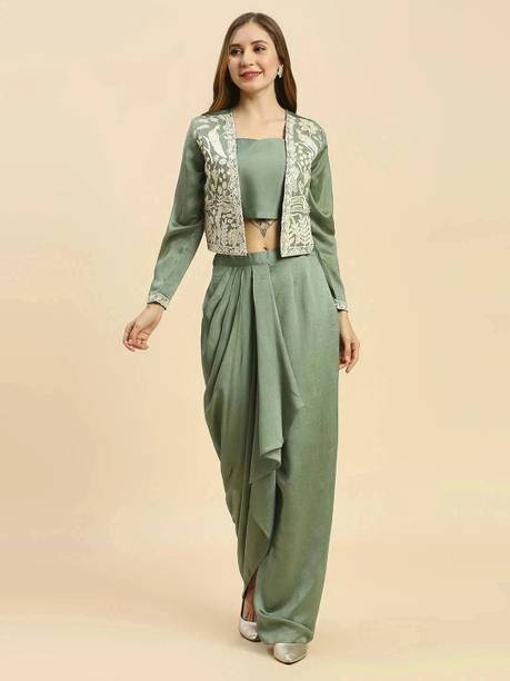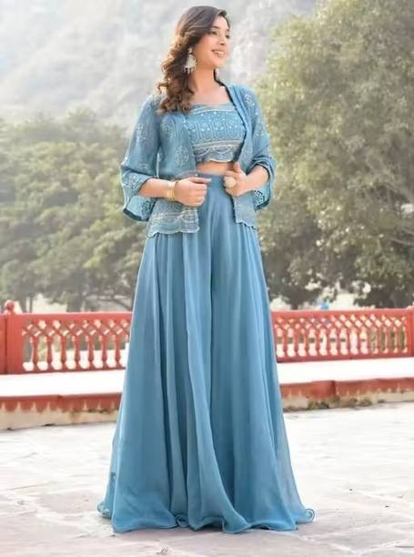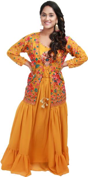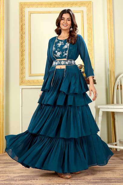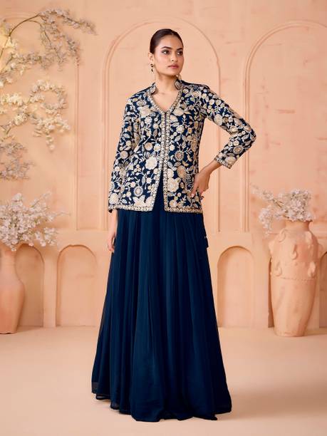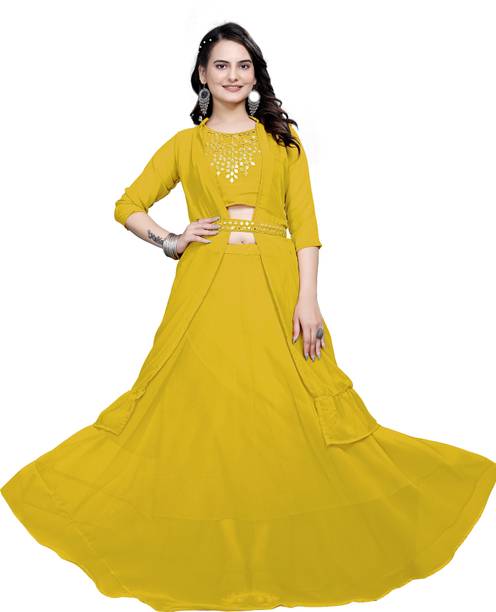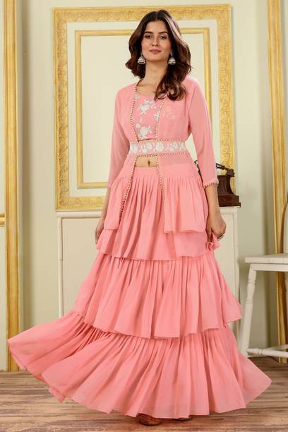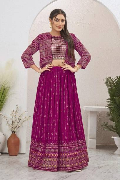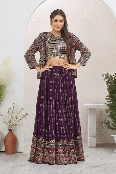 Are you looking for flair dresses that you can wear at weddings, parties, and similar events? If yes, then crop top lehengas with jackets could be what you are looking for. Available in a myriad of designs, colours, patterns and trends, you will find semi-stitched lehengas that reflect your style. Semi-stitched lehenga and crop tops with boat neck and half sleeves, made from heavy net fabric, from the house of SELUXA, are ideal for festive wear. You can get semi-stitched lehengas and cholis in floral prints from Aika. These sleeveless dresses have a crepe blend fabric. ASHTAVINAYAK has semi-stitched, digital print lehengas in satin blend. You can shop checkered semi-stitched crop tops and lehengas from crezz n world. These ethnic dresses are available in satin blends. The cholis are sleeveless and have a round neck. Ethnicset offers printed, semi-stitched crop top lehengas with jackets in multiple colours. The lehenga is made of a silk-blend and is paired with a net dupatta. You can opt for embellished lehengas and cholis from kush fashion. These dresses are semi-stitched, half-sleeved, and square-necked. For the latest crop top lehengas with jackets browse the e-stores and choose your favourites. Place an order online to get them delivered to your doorstep.