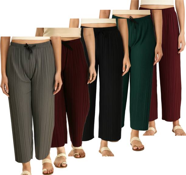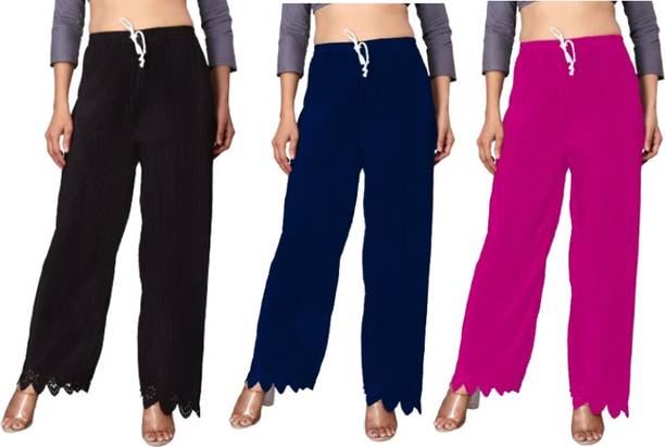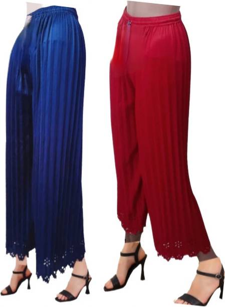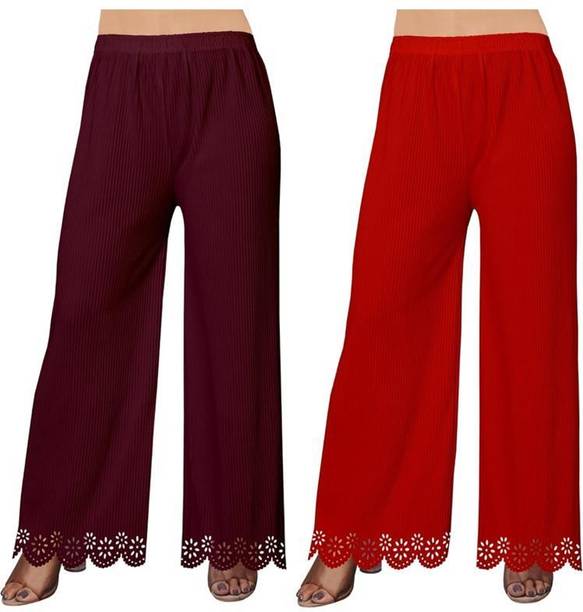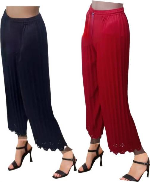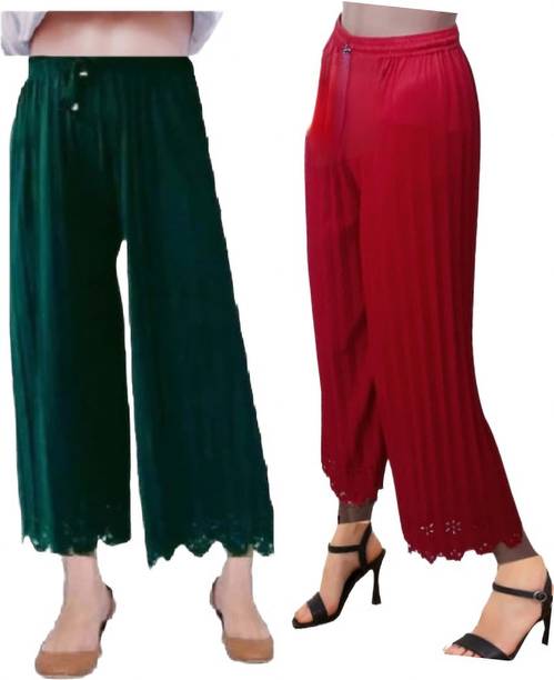 Uplift your wardrobe collection with these cut palazzo sets available online. Get ready to look fabulous at social gatherings with your new, stylish palazzos that can make you the centre of attention at an event. These palazzo designs feature gorgeous flares and a loose-fitting silhouette, blending comfort and elegance with ease. Whether you want to keep it casual or look more formal at an event, these palazzos can make you look fashionable on any occasion. These palazzos are available as singular articles as well as in combo packs, allowing you to opt for a suitable option. Explore a diverse range of designs and patterns with this latest collection of palazzos, available at varied prices. These palazzos offer multiple shades of colours, including blue, green, grey, black, pink, and many more. Find the best ones for yourself among these cut palazzos. Moreover, you can also find adorable palazzos for your little ones too. These bottomwear are provided by Skylee, Samah, Urban Creation, Divastri, Tanvi Creation, 7800 Group, Diva's Choice, Chic Attire, Swornof, Fabdeal, and many more. Take advantage of online shopping to purchase these trendy bottom-wear choices with the help of a few swipes and clicks, and get them delivered to your preferred location without any hassles.