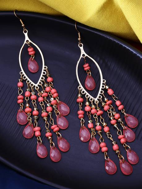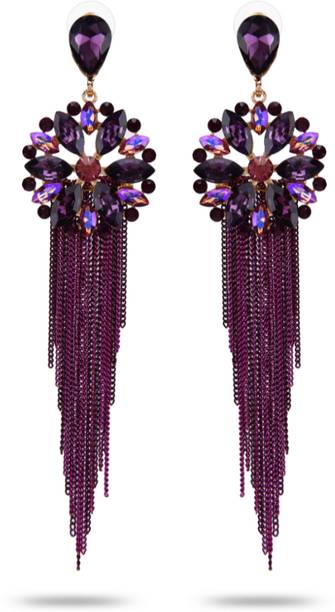 Tassel earrings are an ethnic mark of tradition and culture famous for their thread-like designs. They feature fine threads made from metals, feathers, and wool and help spice up a variety of ethnic dresses. They form a part of contemporary collections and are ideal for women. Tassel earrings feature bodies made from alloys and danglers forming chain-like or ropy threads. Synthetic colored stones, gemstones, and beaded detail are trademark features of tassel-shaped dangler earrings. Most tassel designs commonly come with fish-hook closures.