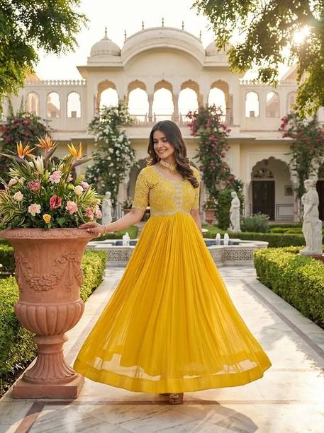 No outfit can bring the same zest to a celebration the way a designer gown brings. With occasions to celebrate around the year, gowns make sure you are ready for every single one. From beautiful colour combinations to radiating shiny shades, gowns give you the ultimate sophisticated look. Designer gowns with intricate ethnic patterns make the perfect outfit for a festival or wedding ceremony. If you prefer a more minimal look, a pretty gown with contemporary designs is the right choice. These beautiful gowns are available in a variety of patterns and styles, including flared, layered, and straight flow. Off-shoulder, halter neck, one-shoulder neckline, and boat neckline are some of the designs you can opt for while choosing a gown. The list of variations does not end here. The type of material used in these outfits can make a lot of difference, like gowns with shimmery fabric are well suited for evening celebrations. In comfortable fabrics like cotton blend, embroidery patterns are added for a more contemporary look. Various brands like Kedar Fab, KALKEE FASHION, AND, Vaani Creation, and Mozila have a fantastic collection of gowns to shop from. If you wish to turn heads in every room that you step in, then shop for the latest designer gowns online. Place your order now. The information you are reading has been last updated on 25-Dec-25.
