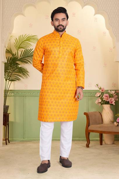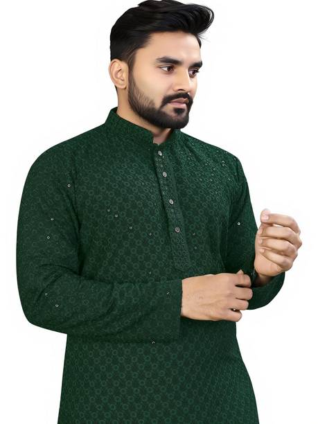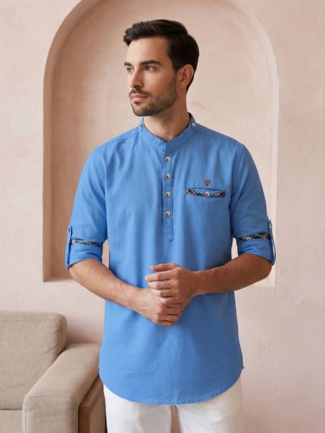 Show off your ethnic fashion sense in style with an impressive designer kurta for men. The traditional kurtas have been a constant cultural staple. The sleek finishing and the minute details can come in handy to create a mix-and-match look. You can now choose from numerous patterns with online shopping, like Paithani, front slit, flared, high low, straight, asymmetric, etc. The length preferred can be selected from ankle-length, calf-length, hip-length, below the knee, above the knee, etc. Moreover, there are various patterns available, such as tribal, bandhani, abstract, floral, embellished, chequered, printed, geometric print, ikat, kalamkari, leheriya, etc. Scroll through the trendy designs and choose according to the occasion, whether a wedding, casual event, party, festival, or more. The attractive kurtas can be teamed with matching footwear and suitable bottom-wear options for a traditional look wherever you go. Make sure to check whether any offers are available and opt for the best-suited kurtas for you at varied price ranges. Brands like Dimmy, Tibra Collection, Fubar, Balkrishna Creation, Allan Peter, and others have a wide range of designer kurta options that you can buy online. Provide a suitable delivery address and get the latest ethnic wear options of your choice delivered right to your doorstep. The information you are reading has been last updated on 20-Mar-26.