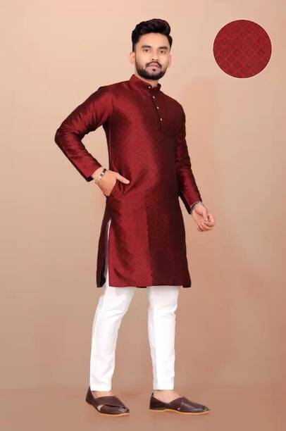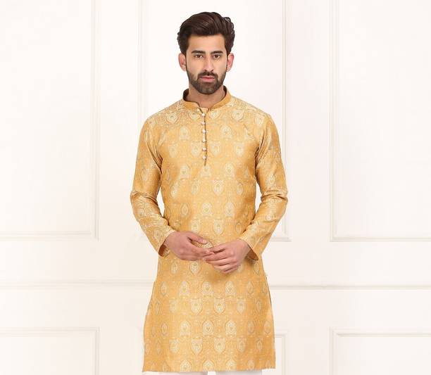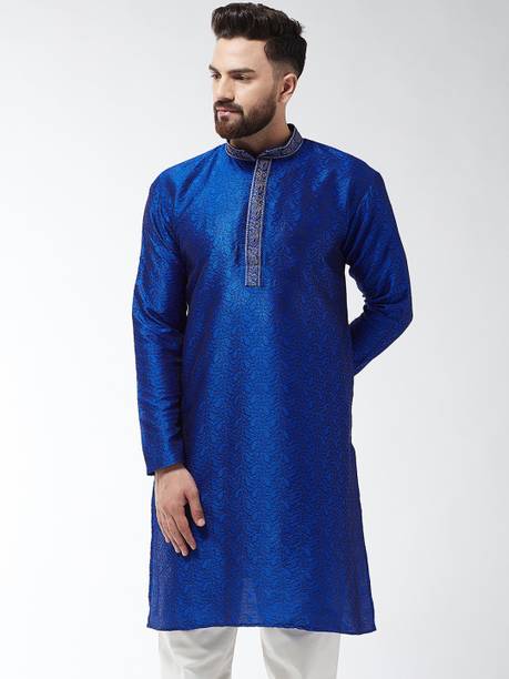 Show off your ethnic fashion sense in style with an impressive designer kurta for men. The traditional kurtas have been a constant cultural staple. The sleek finishing and the minute details can come in handy to create a mix-and-match look. You can now choose from numerous patterns with online shopping, like Paithani, front slit, flared, high low, straight, asymmetric, etc. The length preferred can be selected from ankle-length, calf-length, hip-length, below the knee, above the knee, etc. Moreover, there are various patterns available, such as tribal, bandhani, abstract, floral, embellished, chequered, printed, geometric print, ikat, kalamkari, leheriya, etc. Scroll through the trendy designs and choose according to the occasion, whether a wedding, casual event, party, festival, or more. The attractive kurtas can be teamed with matching footwear and suitable bottom-wear options for a traditional look wherever you go. Make sure to check whether any offers are available and opt for the best-suited kurtas for you at varied price ranges. Brands like Dimmy, Tibra Collection, Fubar, Balkrishna Creation, Allan Peter, and others have a wide range of designer kurta options that you can buy online. Provide a suitable delivery address and get the latest ethnic wear options of your choice delivered right to your doorstep. The information you are reading has been last updated on 08-Oct-25.