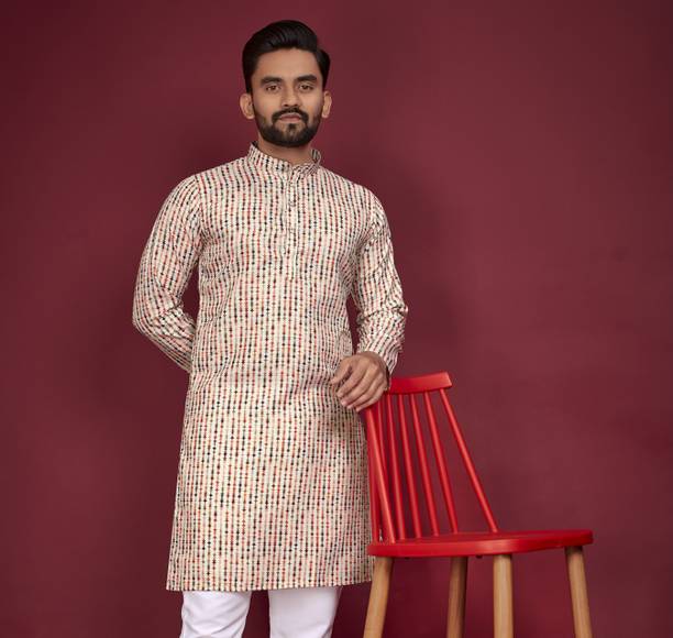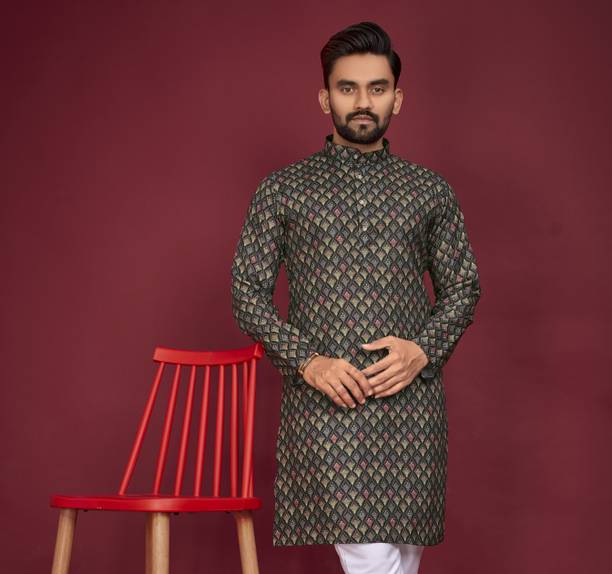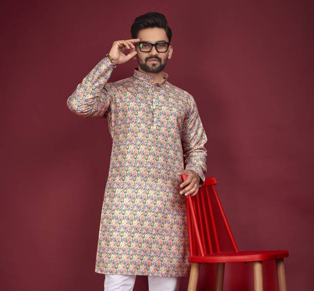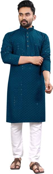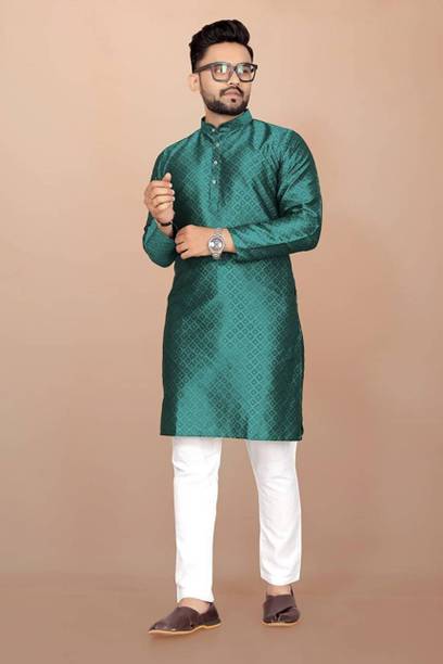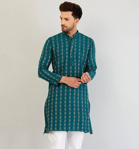 Show off your ethnic fashion sense in style with an impressive designer kurta for men. The traditional kurtas have been a constant cultural staple. The sleek finishing and the minute details can come in handy to create a mix-and-match look. You can now choose from numerous patterns with online shopping, like Paithani, front slit, flared, high low, straight, asymmetric, etc. The length preferred can be selected from ankle-length, calf-length, hip-length, below the knee, above the knee, etc. Moreover, there are various patterns available, such as tribal, bandhani, abstract, floral, embellished, chequered, printed, geometric print, ikat, kalamkari, leheriya, etc. Scroll through the trendy designs and choose according to the occasion, whether a wedding, casual event, party, festival, or more. The attractive kurtas can be teamed with matching footwear and suitable bottom-wear options for a traditional look wherever you go. Make sure to check whether any offers are available and opt for the best-suited kurtas for you at varied price ranges. Brands like Dimmy, Tibra Collection, Fubar, Balkrishna Creation, Allan Peter, and others have a wide range of designer kurta options that you can buy online. Provide a suitable delivery address and get the latest ethnic wear options of your choice delivered right to your doorstep. The information you are reading has been last updated on 06-Oct-25.