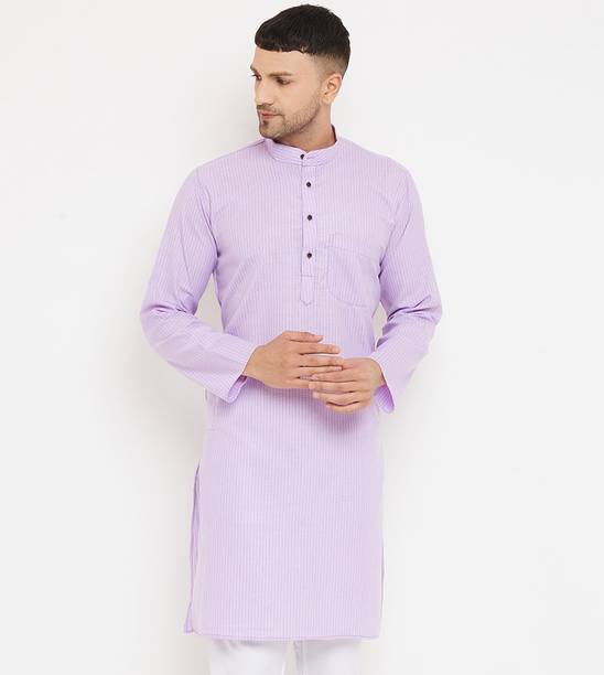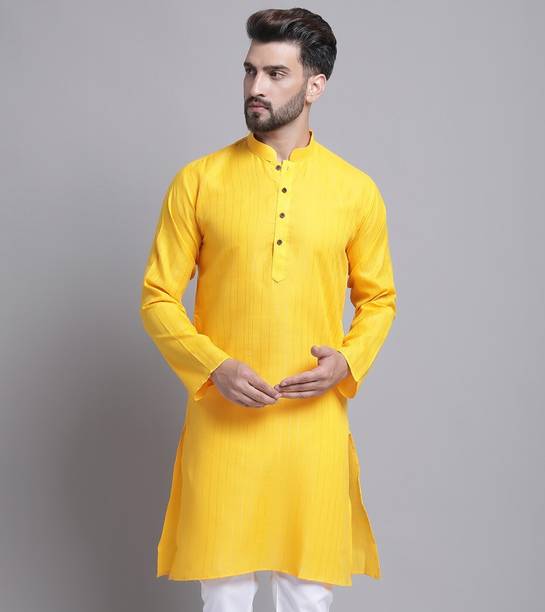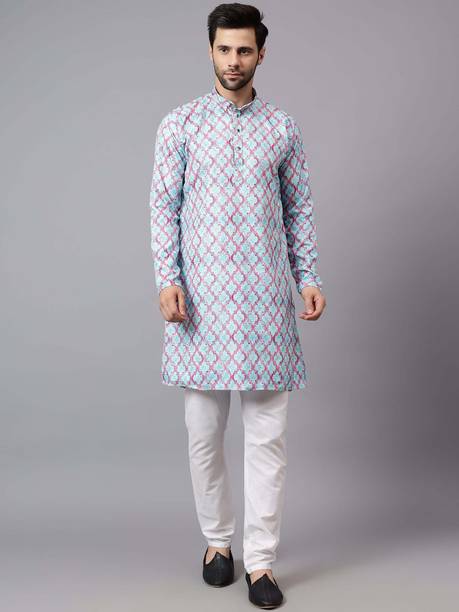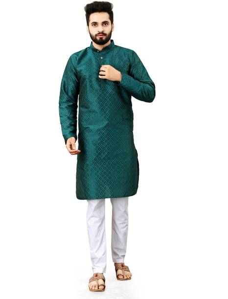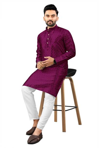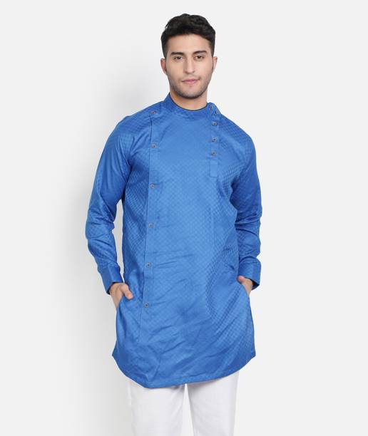 Show off your ethnic fashion sense in style with an impressive designer kurta for men. The traditional kurtas have been a constant cultural staple. The sleek finishing and the minute details can come in handy to create a mix-and-match look. You can now choose from numerous patterns with online shopping, like Paithani, front slit, flared, high low, straight, asymmetric, etc. The length preferred can be selected from ankle-length, calf-length, hip-length, below the knee, above the knee, etc. Moreover, there are various patterns available, such as tribal, bandhani, abstract, floral, embellished, chequered, printed, geometric print, ikat, kalamkari, leheriya, etc. Scroll through the trendy designs and choose according to the occasion, whether a wedding, casual event, party, festival, or more. The attractive kurtas can be teamed with matching footwear and suitable bottom-wear options for a traditional look wherever you go. Make sure to check whether any offers are available and opt for the best-suited kurtas for you at varied price ranges. Brands like Dimmy, Tibra Collection, Fubar, Balkrishna Creation, Allan Peter, and others have a wide range of designer kurta options that you can buy online. Provide a suitable delivery address and get the latest ethnic wear options of your choice delivered right to your doorstep. The information you are reading has been last updated on 07-Oct-25.