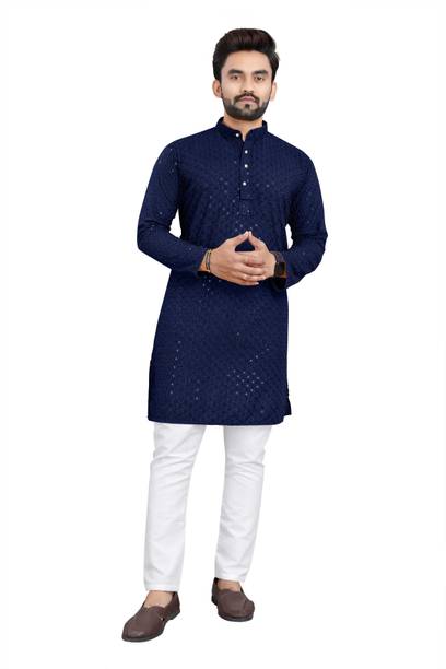 Show off your ethnic fashion sense in style with an impressive designer kurta for men. The traditional kurtas have been a constant cultural staple. The sleek finishing and the minute details can come in handy to create a mix-and-match look. You can now choose from numerous patterns with online shopping, like Paithani, front slit, flared, high low, straight, asymmetric, etc. The length preferred can be selected from ankle-length, calf-length, hip-length, below the knee, above the knee, etc. Moreover, there are various patterns available, such as tribal, bandhani, abstract, floral, embellished, chequered, printed, geometric print, ikat, kalamkari, leheriya, etc. Scroll through the trendy designs and choose according to the occasion, whether a wedding, casual event, party, festival, or more. The attractive kurtas can be teamed with matching footwear and suitable bottom-wear options for a traditional look wherever you go. Make sure to check whether any offers are available and opt for the best-suited kurtas for you at varied price ranges. Brands like Dimmy, Tibra Collection, Fubar, Balkrishna Creation, Allan Peter, and others have a wide range of designer kurta options that you can buy online. Provide a suitable delivery address and get the latest ethnic wear options of your choice delivered right to your doorstep. The information you are reading has been last updated on 07-Oct-25.