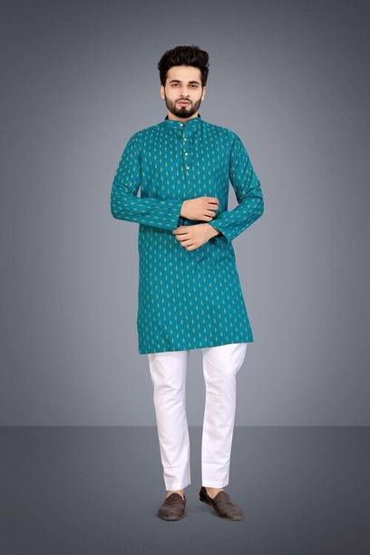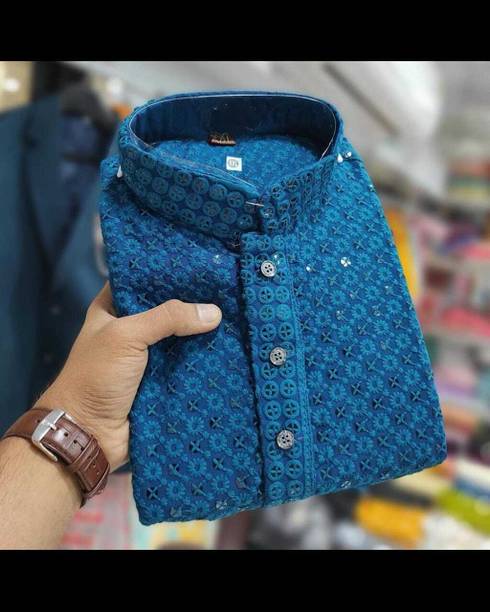 Show off your ethnic fashion sense in style with an impressive designer kurta for men. The traditional kurtas have been a constant cultural staple. The sleek finishing and the minute details can come in handy to create a mix-and-match look. You can now choose from numerous patterns with online shopping, like Paithani, front slit, flared, high low, straight, asymmetric, etc. The length preferred can be selected from ankle-length, calf-length, hip-length, below the knee, above the knee, etc. Moreover, there are various patterns available, such as tribal, bandhani, abstract, floral, embellished, chequered, printed, geometric print, ikat, kalamkari, leheriya, etc. Scroll through the trendy designs and choose according to the occasion, whether a wedding, casual event, party, festival, or more. The attractive kurtas can be teamed with matching footwear and suitable bottom-wear options for a traditional look wherever you go. Make sure to check whether any offers are available and opt for the best-suited kurtas for you at varied price ranges. Brands like Dimmy, Tibra Collection, Fubar, Balkrishna Creation, Allan Peter, and others have a wide range of designer kurta options that you can buy online. Provide a suitable delivery address and get the latest ethnic wear options of your choice delivered right to your doorstep. The information you are reading has been last updated on 08-Oct-25.