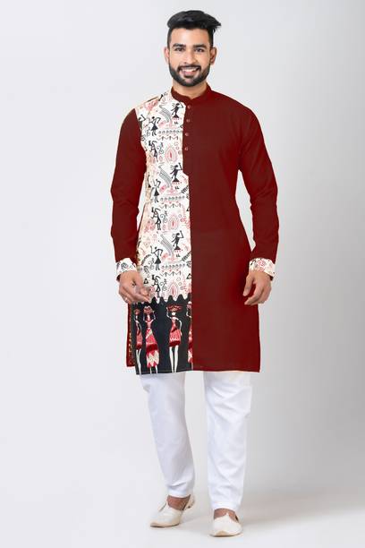 Show off your ethnic fashion sense in style with an impressive designer kurta for men. The traditional kurtas have been a constant cultural staple. The sleek finishing and the minute details can come in handy to create a mix-and-match look. You can now choose from numerous patterns with online shopping, like Paithani, front slit, flared, high low, straight, asymmetric, etc. The length preferred can be selected from ankle-length, calf-length, hip-length, below the knee, above the knee, etc. Moreover, there are various patterns available, such as tribal, bandhani, abstract, floral, embellished, chequered, printed, geometric print, ikat, kalamkari, leheriya, etc. Scroll through the trendy designs and choose according to the occasion, whether a wedding, casual event, party, festival, or more. The attractive kurtas can be teamed with matching footwear and suitable bottom-wear options for a traditional look wherever you go. Make sure to check whether any offers are available and opt for the best-suited kurtas for you at varied price ranges. Brands like Dimmy, Tibra Collection, Fubar, Balkrishna Creation, Allan Peter, and others have a wide range of designer kurta options that you can buy online. Provide a suitable delivery address and get the latest ethnic wear options of your choice delivered right to your doorstep. The information you are reading has been last updated on 08-Oct-25.