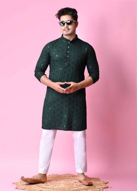 Look smart and graceful in designer kurta pajama sets. Flaunt your style in designer sets available in various colours, work, materials, cuts, fits, and styles. From traditional to contemporary, you can find it all here. Be it festivals, family gatherings, formal occasions, or wedding events, you can wear this kurta pajama set for all kinds of events. Teaming the kurta with a long or short jacket made of raw silk, Khadi silk, jacquard, tussar, dupion silk, or satin will enhance your appearance. You can further elevate your looks by pairing the kurta set with a stole. The footwear that you put on also adds to the look. Sandals, mojaris, chappals, or slip-on shoes that match the jacket or stole, does wonders to complete the royal look of this Indian outfit. You can shop online for the latest designer kurta pajama sets and be the centre of attention of all gatherings. Some popular brands offering designer kurta pajama sets online include Tibra Collection, Royal Garments, LIKE ONE, Royal Heritage, and HUZUR. Browse through the attractive collection and place an order online for the ethnic outfit of your choice. Get it delivered to your doorstep without any hassles.The information you are reading has been last updated on 06-Nov-25.