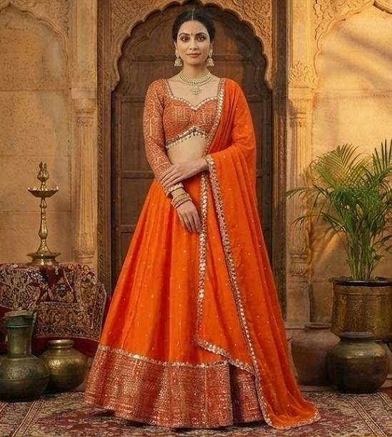 If you have a wedding invitation around the corner, add elegant charm to your look by bringing designer lehengas to your home. Divas can get their hands on a lehenga choli that offers ethnic grace and royalty and comes with a spectrum of bright colours. While choosing this attire, you need to consider the design and fabric of the product. Mirror work in a lehenga can add an oomph to your look in no time. Try a magnificent piece crafted with heavy embroidery work that will make people stop and turn around you. You can choose a lehenga with flare, a heavy border, and a silk dupatta to get a dramatic look. Some of the brands that sell this ethnic attire online are Aks, Divastri, Kedar Fab, Saara, Rudki Enterprise, and others. Bride-to-be can opt for a mesmerising design with the traditional red colour that everyone will notice during the ceremony. You can choose attire from pattern options like printed, floral print, bandhani, chequered, chevron/zig-zag, colourblock, digital print, and others. Lehenga looks rich, royal, and exuberating in style, which makes it a must-have in your closet. Choose a designer lehenga from the plethora of options and pair it with an embroidered belt to look more stylish.Explore latest collections of Designer lehenga online on Flipkart at best prices. Price list last updated on 27-Jan-26.