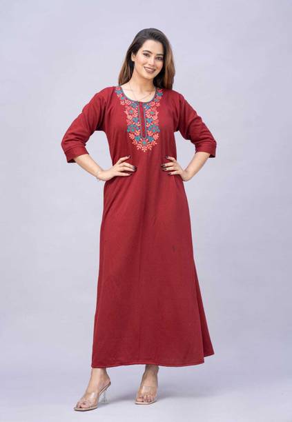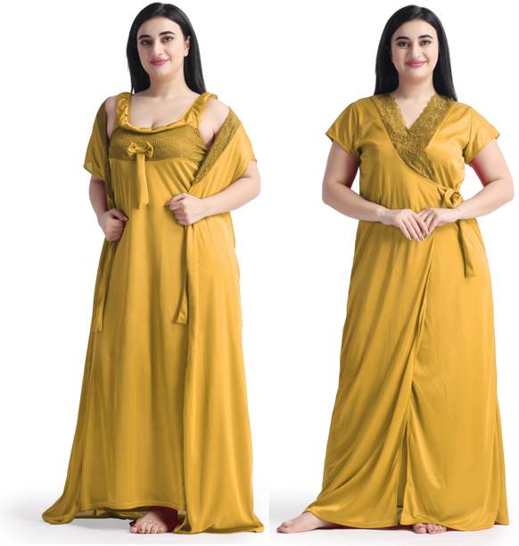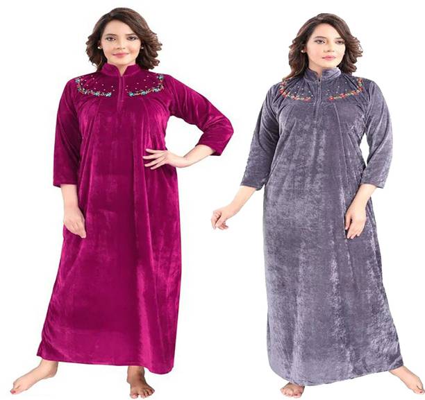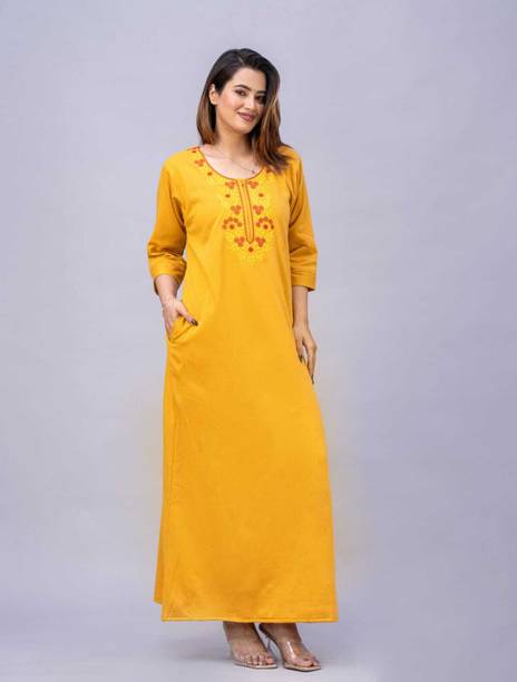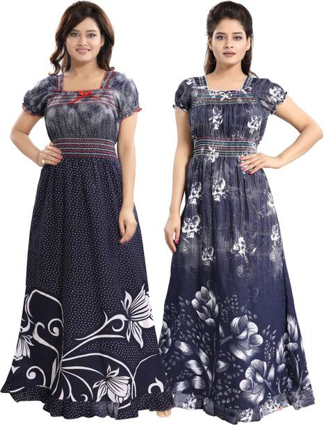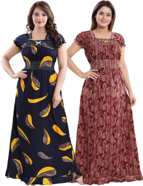 A designer nighty is a loosely flowing nightwear garment worn by women. Women prefer it because it's free-flowing and comfortable to wear. You can browse various trendy nighties like nursing or maternity options, lingerie sets with or without a robe, chemises, designer robes, etc. You may choose from different lengths like a calf, knee, below the knee, above the knee, ankle, etc. You can also pick from different patterns such as printed, polka dots, floral, lace, embroidered, solid, etc. New sleeve styles like cap, coiffered, kimono, batwing, flared, noodle strap, cuffed, cape, sleeveless, etc., are popular choices. You can select nighties from a range of colour combinations and designs easily available online. There are multiple fabric kinds, such as cotton, satin, crepe, rayon, net, hosiery, silk, viscose, alpine, etc., available online. You can look at sophisticated blends like poly crepe and cotton viscose, satin silk, satin lace, etc. Some of the latest neck patterns include scoop, mandarin, V neck, square, round, sweetheart, tie-up, keyhole, and more. So, pick from scores of designer night options from trusted brands such as Pearl Night Wears, Designers Boutique, Indian Craft Castle, Sai Raj Fashion, Mystique Lady, etc. Order them online from your home and get them delivered to your doorstep. The information you are reading has been last updated on 24-Dec-25.