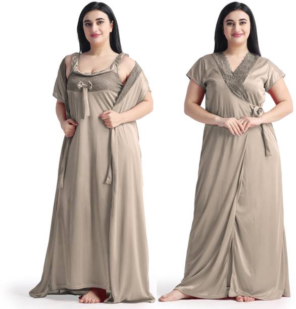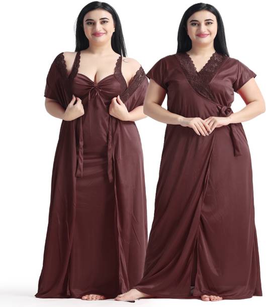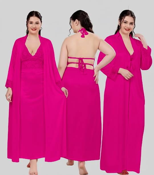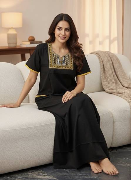 A designer nighty is a loosely flowing nightwear garment worn by women. Women prefer it because it's free-flowing and comfortable to wear. You can browse various trendy nighties like nursing or maternity options, lingerie sets with or without a robe, chemises, designer robes, etc. You may choose from different lengths like a calf, knee, below the knee, above the knee, ankle, etc. You can also pick from different patterns such as printed, polka dots, floral, lace, embroidered, solid, etc. New sleeve styles like cap, coiffered, kimono, batwing, flared, noodle strap, cuffed, cape, sleeveless, etc., are popular choices. You can select nighties from a range of colour combinations and designs easily available online. There are multiple fabric kinds, such as cotton, satin, crepe, rayon, net, hosiery, silk, viscose, alpine, etc., available online. You can look at sophisticated blends like poly crepe and cotton viscose, satin silk, satin lace, etc. Some of the latest neck patterns include scoop, mandarin, V neck, square, round, sweetheart, tie-up, keyhole, and more. So, pick from scores of designer night options from trusted brands such as Pearl Night Wears, Designers Boutique, Indian Craft Castle, Sai Raj Fashion, Mystique Lady, etc. Order them online from your home and get them delivered to your doorstep. The information you are reading has been last updated on 09-Mar-26.