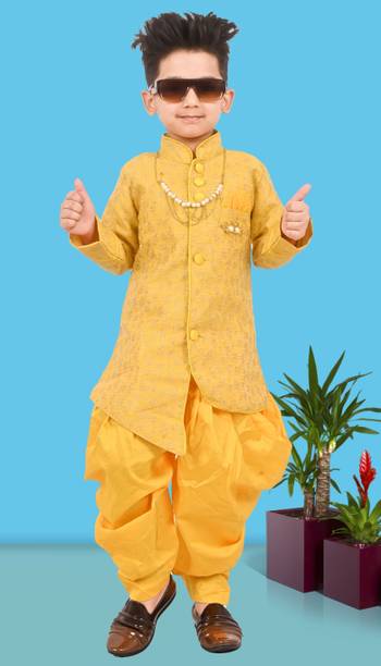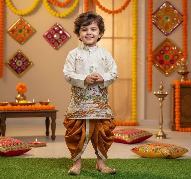 Dress your little prince up in a dhoti and kurta, and add a touch of style to his looks. If you are heading for a festive event and you need an ethnic outfit for your little one, then shop for dhoti kurtas for boys online. Brands, such as SKDC, KL Collections, FTC Fashions, SmartRAHO, JBN Creation, Vastramay, AJ Dezines, etc., bring to you a huge collection of boys’ dhoti kurta sets. You can shop for ethnic wear for your little ones and add these cute outfits to their wardrobe collection. Your kids will definitely make a lot of heads turn with these adorable yet stylish outfits. You can even buy dhotis separately from the kurta. Moreover, styling these outfits is such a breeze. You can shop for Kolhapuri shoes for your kid to wear with his dhoti and kurta. Children look adorable when they have dressed appropriately for an event or function. Don’t take that away from your kid and shop for dhoti kurtas for boys online today. To ease your shopping experience, you can use the filters provided on the left-hand side of the page. The information you are reading has been last updated on 03-Mar-26.