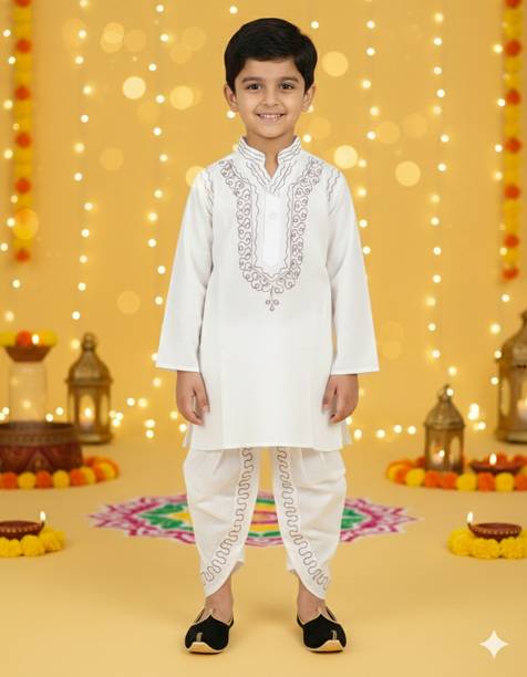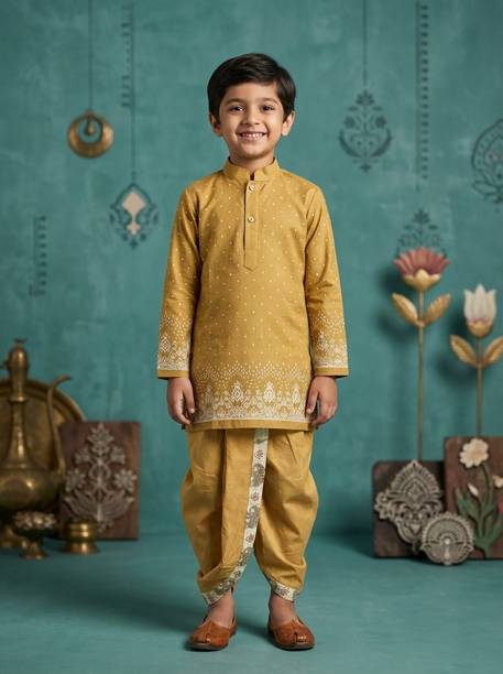 Dress your little prince up in a dhoti and kurta, and add a touch of style to his looks. If you are heading for a festive event and you need an ethnic outfit for your little one, then shop for dhoti kurtas for boys online. Brands, such as SKDC, KL Collections, FTC Fashions, SmartRAHO, JBN Creation, Vastramay, AJ Dezines, etc., bring to you a huge collection of boys’ dhoti kurta sets. You can shop for ethnic wear for your little ones and add these cute outfits to their wardrobe collection. Your kids will definitely make a lot of heads turn with these adorable yet stylish outfits. You can even buy dhotis separately from the kurta. Moreover, styling these outfits is such a breeze. You can shop for Kolhapuri shoes for your kid to wear with his dhoti and kurta. Children look adorable when they have dressed appropriately for an event or function. Don’t take that away from your kid and shop for dhoti kurtas for boys online today. To ease your shopping experience, you can use the filters provided on the left-hand side of the page. The information you are reading has been last updated on 15-Jan-26.
