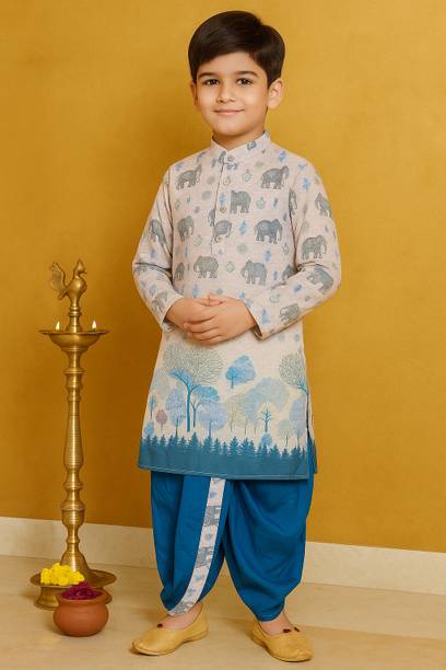 Dress your little prince up in a dhoti and kurta, and add a touch of style to his looks. If you are heading for a festive event and you need an ethnic outfit for your little one, then shop for dhoti kurtas for boys online. Brands, such as SKDC, KL Collections, FTC Fashions, SmartRAHO, JBN Creation, Vastramay, AJ Dezines, etc., bring to you a huge collection of boys’ dhoti kurta sets. You can shop for ethnic wear for your little ones and add these cute outfits to their wardrobe collection. Your kids will definitely make a lot of heads turn with these adorable yet stylish outfits. You can even buy dhotis separately from the kurta. Moreover, styling these outfits is such a breeze. You can shop for Kolhapuri shoes for your kid to wear with his dhoti and kurta. Children look adorable when they have dressed appropriately for an event or function. Don’t take that away from your kid and shop for dhoti kurtas for boys online today. To ease your shopping experience, you can use the filters provided on the left-hand side of the page. The information you are reading has been last updated on 22-Nov-25.