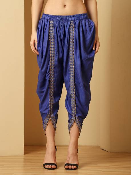 Do you want to create an eye-catching contemporary look at festive events? If yes, exploring dhoti salwar styles online can be a useful idea. The flared trousers have an elastic waistband and come with a drawstring closure, offering you a comfortable fit and freedom of movement at all times. You can pair the loose bottomwear with short-length kurtis or crop tops to flaunt your unique fashion sense. While making a purchase online, make sure to consider essential factors like fit, fabric, and colour to find the best-suited garment as per your needs. Browse and choose from durable fabrics like silk blend, poly crepe, rayon, and cotton lycra blend, among others. The quality materials give the attire a lovely finish and a regal appearance. The attractive dhoti salwars are an ideal blend of elegance and comfort. They add a traditional touch to diverse ensembles. The latest pants can be found in numerous shades, including blue, grey, red, dark blue, maroon, orange, and so much more. Refer to the product specifications to get detailed insights about the price ranges and offers available from the comfort of your home. Buy trendy garments online from brands like Sakhi Shine, Vadiki, Sukriti, Donson, Bitterlime, and more. Shop online and enjoy numerous benefits like doorstep delivery, multiple payment options, and more.