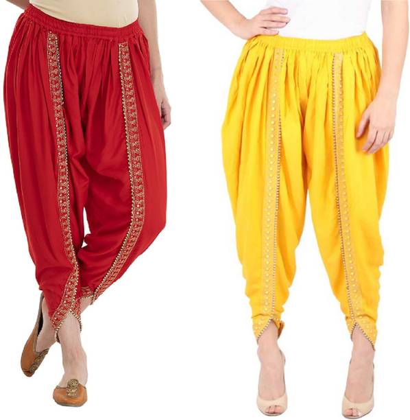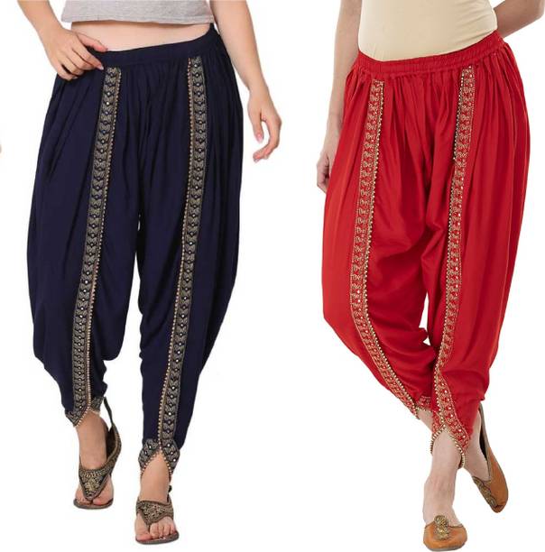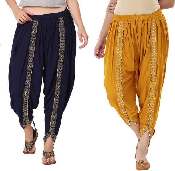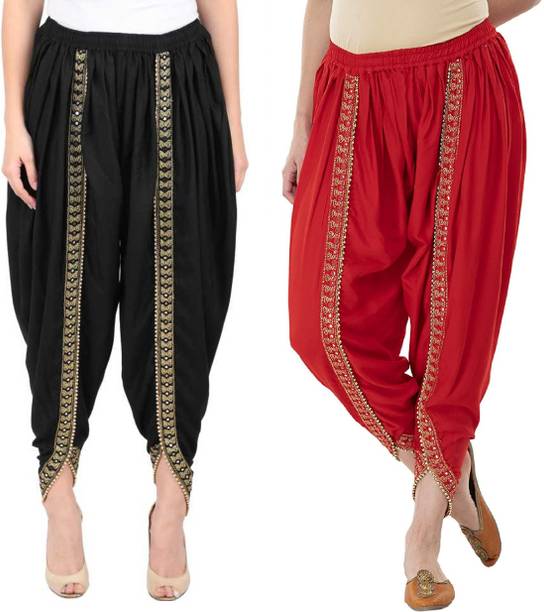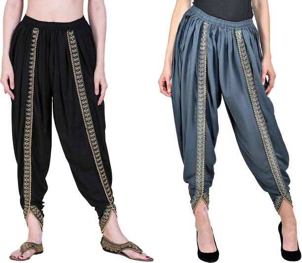 Do you want to create an eye-catching contemporary look at festive events? If yes, exploring dhoti salwar styles online can be a useful idea. The flared trousers have an elastic waistband and come with a drawstring closure, offering you a comfortable fit and freedom of movement at all times. You can pair the loose bottomwear with short-length kurtis or crop tops to flaunt your unique fashion sense. While making a purchase online, make sure to consider essential factors like fit, fabric, and colour to find the best-suited garment as per your needs. Browse and choose from durable fabrics like silk blend, poly crepe, rayon, and cotton lycra blend, among others. The quality materials give the attire a lovely finish and a regal appearance. The attractive dhoti salwars are an ideal blend of elegance and comfort. They add a traditional touch to diverse ensembles. The latest pants can be found in numerous shades, including blue, grey, red, dark blue, maroon, orange, and so much more. Refer to the product specifications to get detailed insights about the price ranges and offers available from the comfort of your home. Buy trendy garments online from brands like Sakhi Shine, Vadiki, Sukriti, Donson, Bitterlime, and more. Shop online and enjoy numerous benefits like doorstep delivery, multiple payment options, and more.