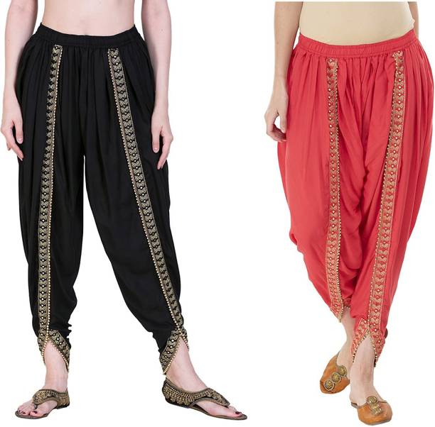 Do you want to create an eye-catching contemporary look at festive events? If yes, exploring dhoti salwar styles online can be a useful idea. The flared trousers have an elastic waistband and come with a drawstring closure, offering you a comfortable fit and freedom of movement at all times. You can pair the loose bottomwear with short-length kurtis or crop tops to flaunt your unique fashion sense. While making a purchase online, make sure to consider essential factors like fit, fabric, and colour to find the best-suited garment as per your needs. Browse and choose from durable fabrics like silk blend, poly crepe, rayon, and cotton lycra blend, among others. The quality materials give the attire a lovely finish and a regal appearance. The attractive dhoti salwars are an ideal blend of elegance and comfort. They add a traditional touch to diverse ensembles. The latest pants can be found in numerous shades, including blue, grey, red, dark blue, maroon, orange, and so much more. Refer to the product specifications to get detailed insights about the price ranges and offers available from the comfort of your home. Buy trendy garments online from brands like Sakhi Shine, Vadiki, Sukriti, Donson, Bitterlime, and more. Shop online and enjoy numerous benefits like doorstep delivery, multiple payment options, and more.