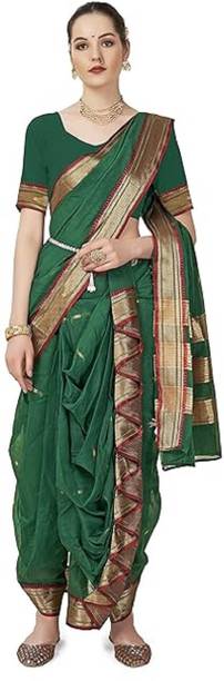 Dhoti saree, also known as Nauvari, is originally a 9-yard drape that is worn identically to Maharashtrian style dhoti. Since it requires practice and draping it is time-consuming, you can opt for the pre-stitched and ready-to-wear versions available online. You can browse for the latest dhoti sarees from brands like Fabviva, Bhavyam, Janasya, Vahson, Swagtee, and many more. This outfit can be worn without a petticoat and does not necessarily need an underskirt. Available in a plethora of fabrics like cotton, silk, satin, and more, as well as many vibrant shades, these beauties can be worn for occasions like festivals, weddings, etc. They can also be worn in various manners and lengths, depending upon your preferences and fashion choices. The pre-stitched garments are easy to wear and carry as these are designed to be lightweight. Wear them like trousers and pin up the end to get ready in an instant. You can always accessorise the drape with a colour-contrasting blouse and a heavily embellished belt or jewellery, depending on the colour and prints. These drapes are suitable for any body type, and the style is considered to be elegant and virtuous. Shop for dhoti sarees online and add them to the cart for doorstep delivery. The information you are reading has been last updated on 06-Mar-26