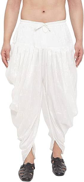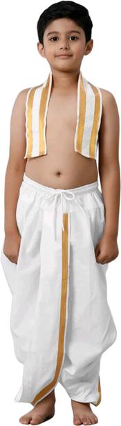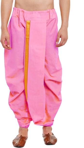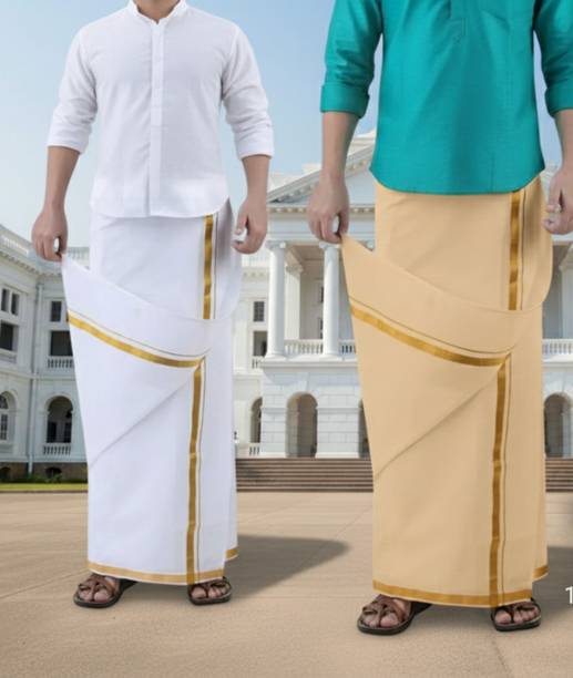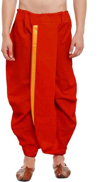 Dhotis are loose trousers worn by Indian men. They are rectangular cut cloth pieces traditionally made up of cotton or linen. They are worn by wrapping around the entire waist and legs and lastly pulled together and knotted or tucked in behind and in the front. On the other hand, formal ones are fashioned out of superior fabrics such as silk and have embroidered borders. Classic white cotton ones are the everyday wear worn by men as they are more comfortable and cooler. Most dhotis are white and have a single line of any colour running across about five cm away from the border. They are known by different names across India, such as Dhofar in Marathi, Pancha in Kannada, Veshti in Tamil, Munda in Malayalam, and Laacha in Punjabi. It is mostly combined with a kurta, angavastram, chokka, or jubba, which are traditional top wear for men. Men typically wear them at religious functions and marriage ceremonies. The latest dhotis have broader embroidered borders which make the cloth look royal and vibrant. You can buy them online from brands like Vastramay, Fanzi, Larwa, Prakasam Cotton, Vinayakaa Cotton, and many more, and have them delivered to your doorstep. The information you are reading has been last updated on 27-Feb-26