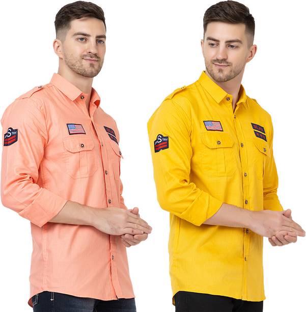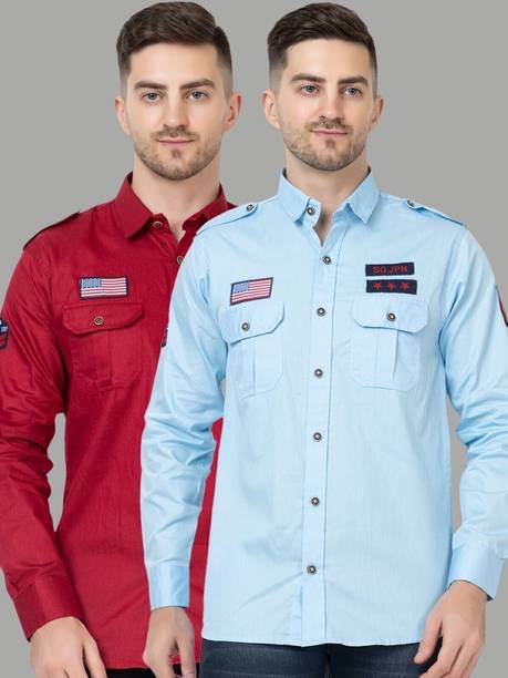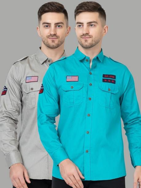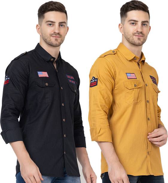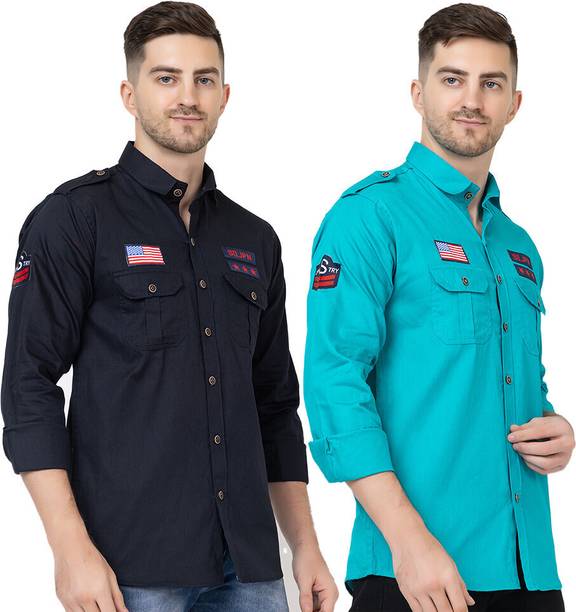 Uplift your wardrobe with outfits that effortlessly bring functionality and style together by adding some double-pocket shirts to your collection. Whether you prefer a casual vibe or want to make a fashion statement, these shirts can help you achieve it with ease. Explore diverse designs like solid, chequered, printed, striped, military camouflage, washed, colourblocked, embroidered, floral print, graphic print, and self-design. You can choose the ones you like the best. Choose the latest shirts available at varied prices from a plethora of options available online. Made with fabrics including pure cotton, denim, cotton blend, cotton silk, and cotton lycra, these shirts can be suitable in a variety of weather conditions. The collection offers several choices in collar styles like Mandarin, button-down, lapel, slim, cut-away, curved, and spread collar. Additionally, you can also choose the sleeve length, including full sleeves, half sleeves, and roll-up sleeves. Browse and select from various colours such as black, white, blue, red, grey, green and many more and add these trendy shirts to your collection. Brands like The Hell Driver, Kuons Avenue, Verticals, Vulture Fly, Dezano, Artlook, and many more present a wide range of double-pocket shirts. So buy online and get ready to blend your modern style with an irresistible charm.