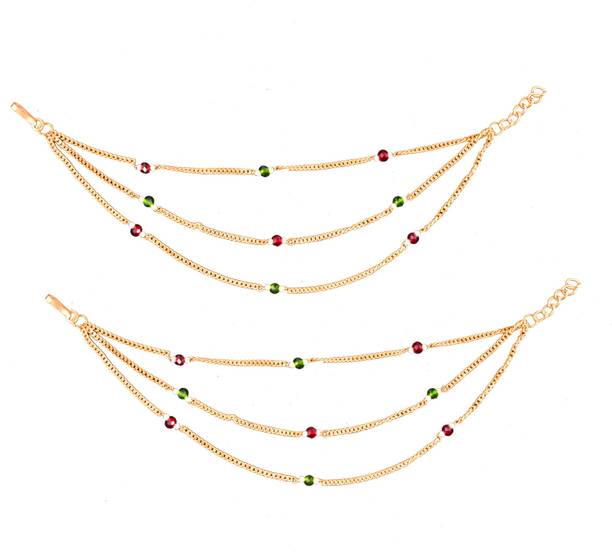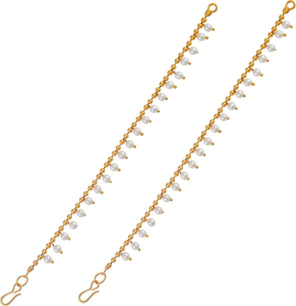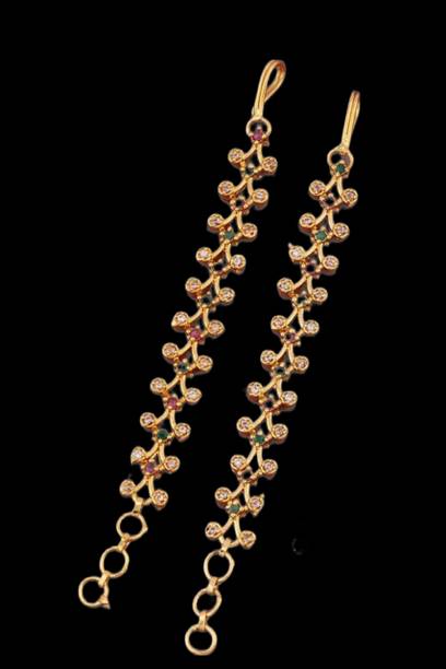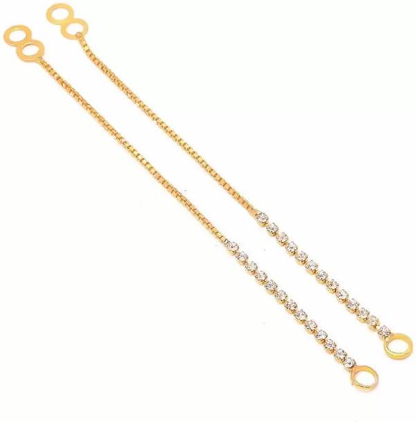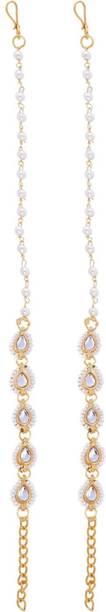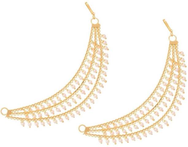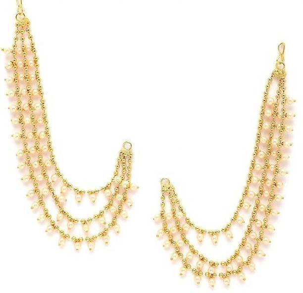 Sanjog White Pearl Brass Traditional Ear Chain For Women/Girls Brass Ear Thread