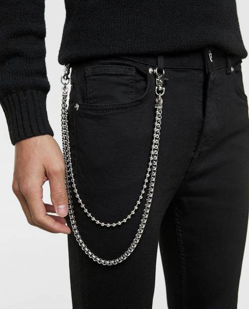 Its 4 You Gothik Pant Chain,Hip Hop Pocket Jean Chain,Two Layer (For Womens And Mens) Sterling Silver Plated Stainless Steel Chain