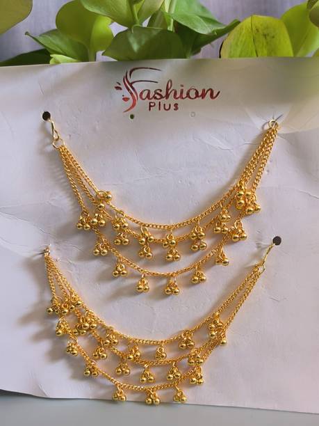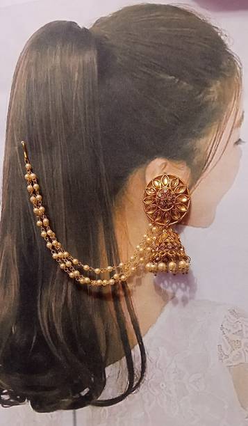 SHI Jewellery Gold Plated Ear Chain Traditional White pearl Kaan Chain Pearl Brass Ear Thread