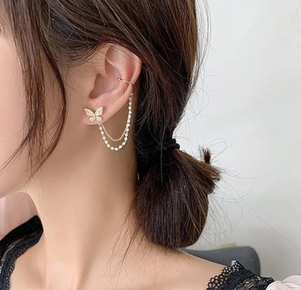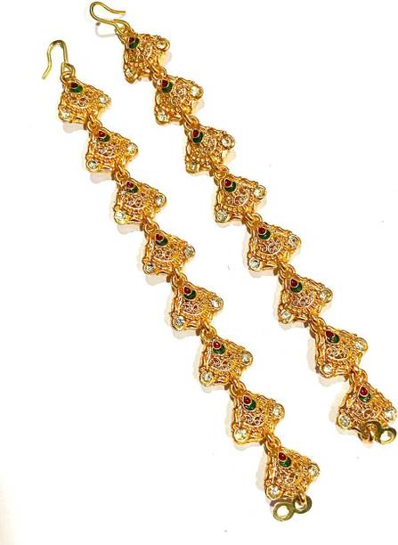 MEENAZ 1 one gram gold Polish 22k Plated Traditional Temple Jewellery Bahubali Brass Copper Ear Chain White pearl Studded Kan chain south indian Earing For Women girls wedding bridal bride dulhan Fancy party wear Latest Set kaan Hair Accessory women kanoti head Wedding Pearl Accessories Jhumki Jhumka rings Ethnic Collection Festive Party Wear Design Gold Link cuff Fashion Long Alloy Cuff ear chains Combo golden long earrings earing jhumka combo EAR CHAIN-ME120 Copper, Metal, Brass, Alloy Ear Thread, Drops & Danglers