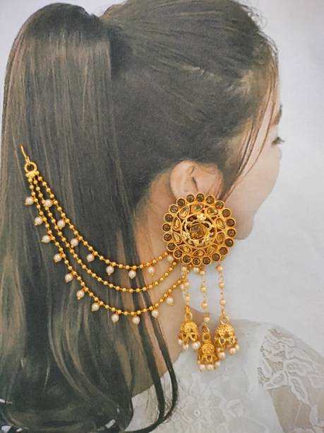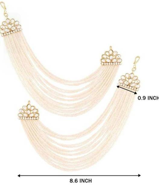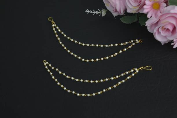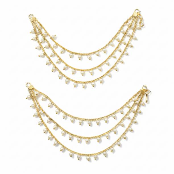 SHI Jewellery Traditional Kan Chain Gold Plated White pearl Ear Chain Pearl Brass Ear Thread