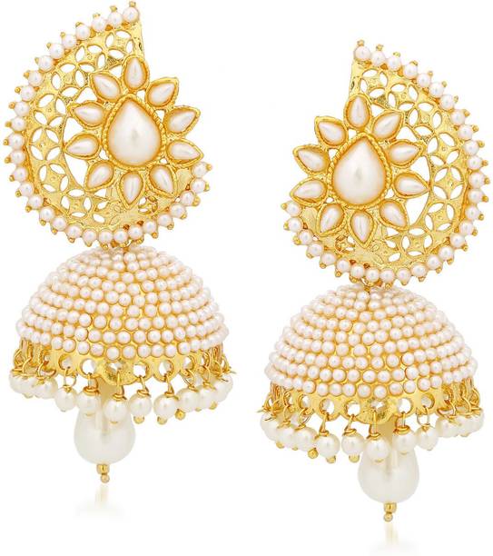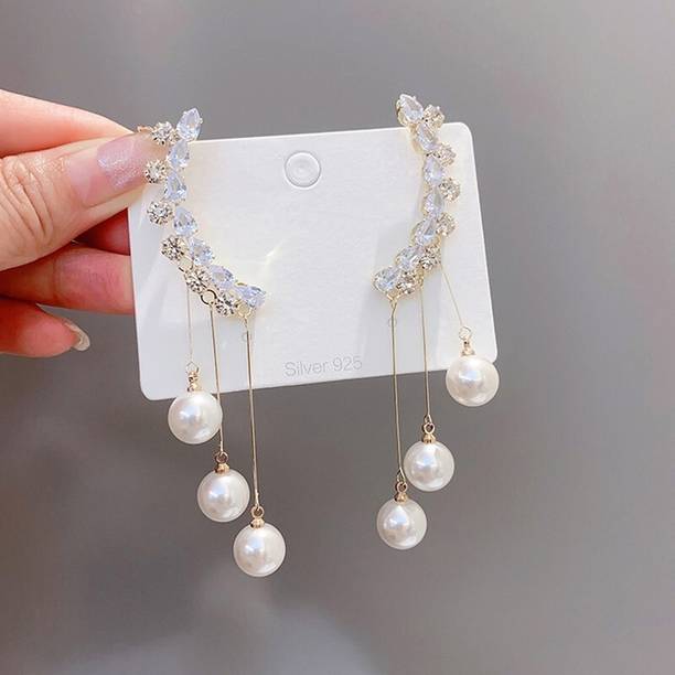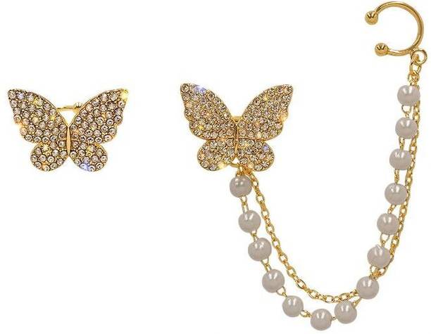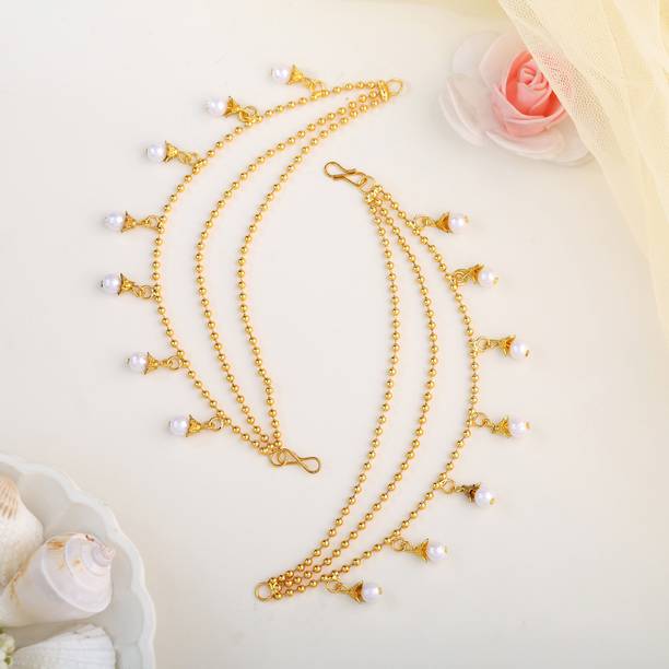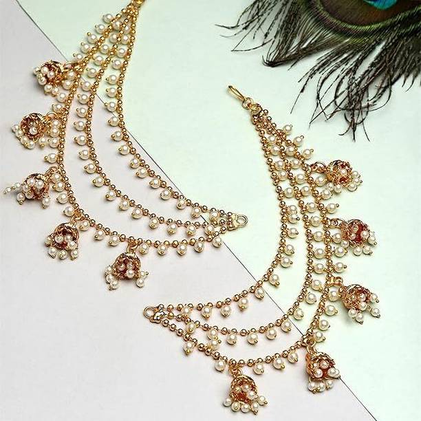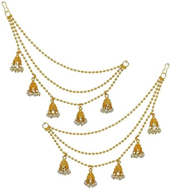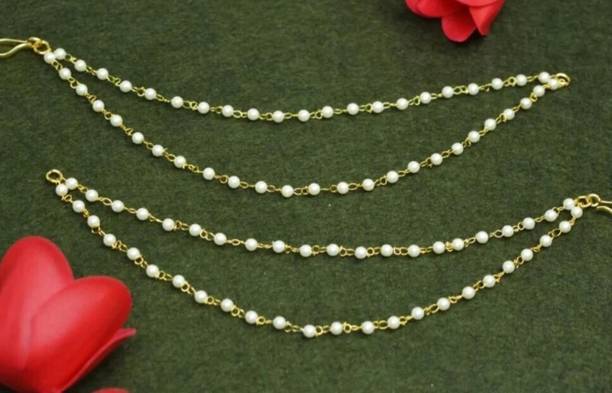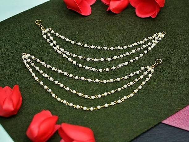 SHI Jewellery Gold Plated Ear Chain Traditional White pearl Kaan Chain Pearl Brass Ear Thread