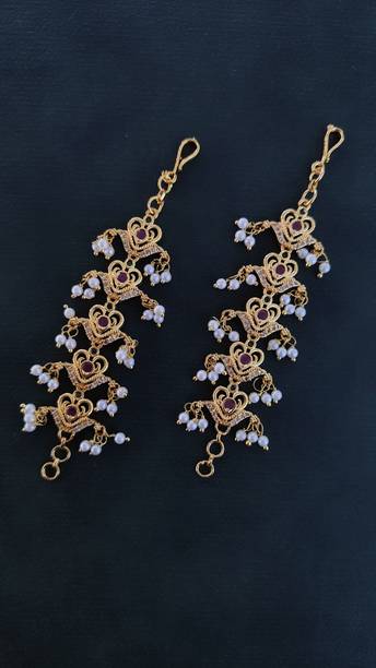 Ricious Fancy Earring bahubali Earring Supporter Earchain Kaan Chain Earring chain Beads Brass Ear Thread