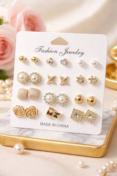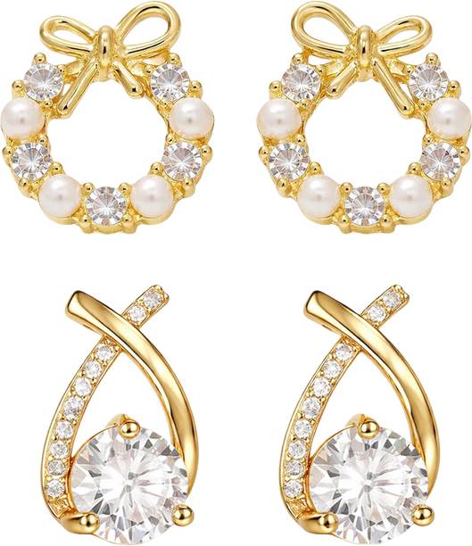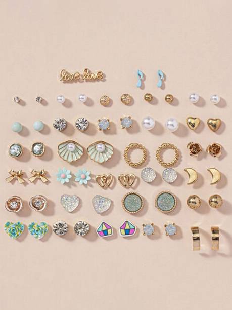 Ear studs are a piece of classic jewellery that can adorn you with a minimalistic look. They are ideal for special occasions and are also suitable for daily wear, owing to their modest size. Explore the options online to find various designs that go well with Western wear, ethnic outfits, as well as contemporary ones and can complement your look. You will find studs with ornate designs in gold that can be paired with your ethnic attires like kurtis and sarees. You can also check out some options studded with gemstones and beads. Tanish trends, S S Jewels, ruby collection, Honbon, Pearlz Ocean, and more are some of the brands that offer a plethora of options to choose from. Available at varied prices, you will find trendy studs made of various materials such as copper, steel, metal, brass, and bronze. These studs may have a drop or dangler for a dressy look. Choose from colours such as brown, maroon, rose gold, multicolour, turquoise, and more that can help you match them with your outfits, or go for gold, silver, and black for a versatile pairing. You will find the latest themes in the collection, allowing you to choose the ones you like the best. So, buy ear studs online, and try out new ways of accessorising your look.
