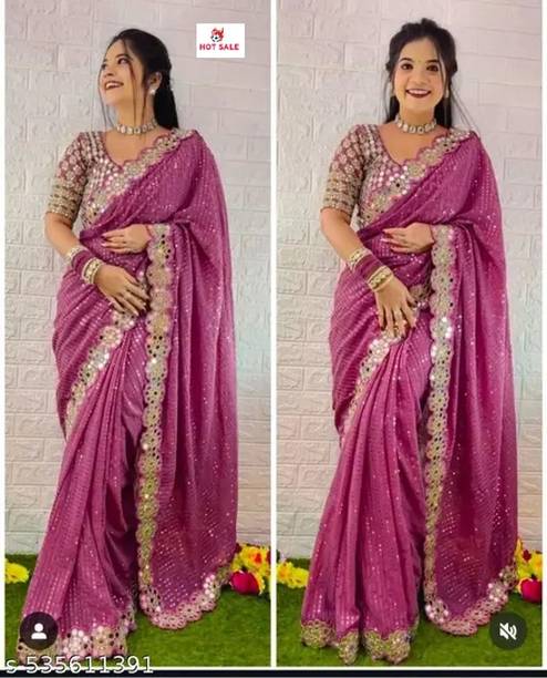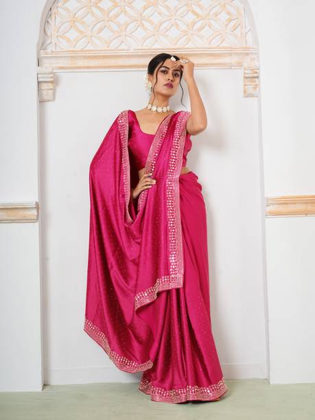 The sheer elegance and charm of ethnic sarees are undeniable. Channel your inner diva with an embellished saree that is sure to set you apart from the crowd. Elevate your style quotient and choose from myriad options of different colours, designs, patterns, and fabrics according to your liking and personality. The saree’s intricate designs and elaborate work indicate how ‘heavy’ or ‘light’ it is. A bride’s wedding trousseau is incomplete without this classic yet contemporary wear. No Indian occasions or festivities are complete without adorning the evergreen six-yard drape. Pick your favourites from an array of fashionable georgette sarees, Lucknowi chikankari sarees, Kanjivaram or Kantha silk sarees, Banarasi net sarees, Bandhani traditional sarees, sarees with floral motifs, or geometrical prints. A magnificently embellished saree in vibrant hues with intricate embroidery and golden lace border makes for a royal piece. Whether you want a traditional or a modern chic ensemble, you can pick according to the occasion and your comfort levels. Styling them with matching or contrasting blouses and accessorising them with the right jewellery will surely make heads turn. Narrow down your search and pick your favourite from the latest embellished sarees online collection. Shop from popular brands like LAHEJA, SAARA, Radhika Creation, Anugrah Textile, AAENA, AVAAK, and many others. The information you are reading has been last updated on 28-Nov-25