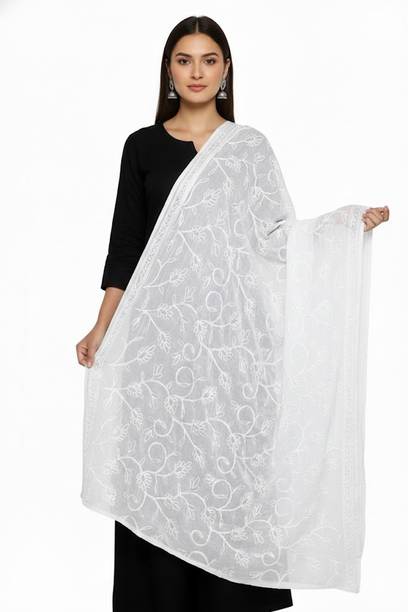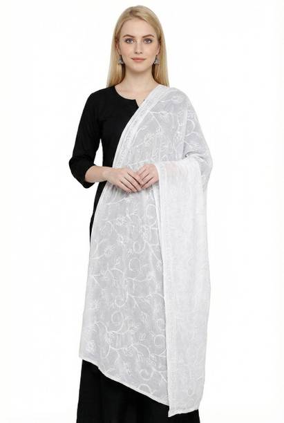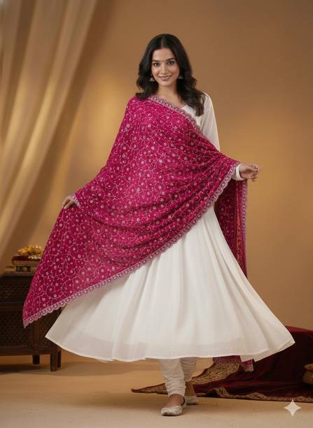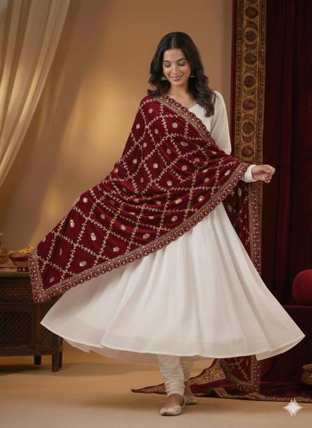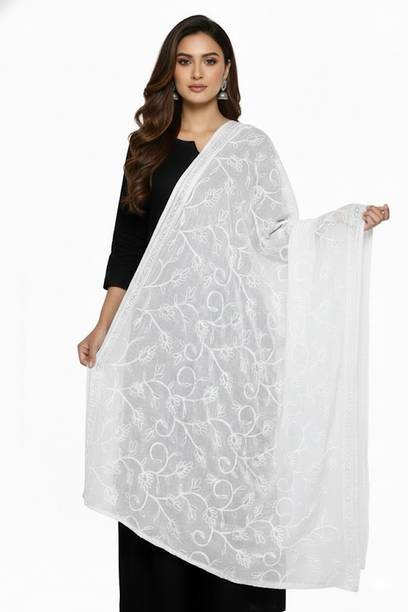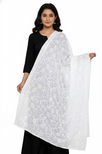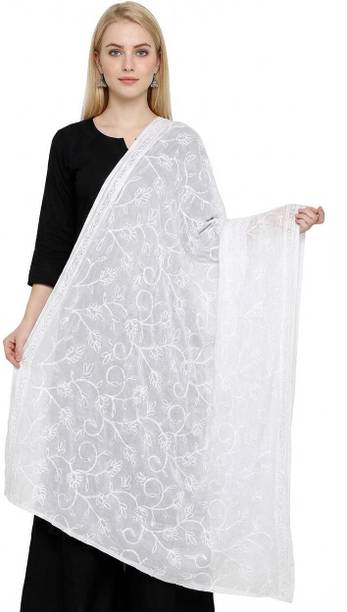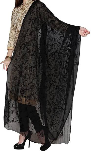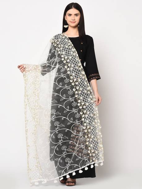 An embroidered dupatta is a great way to complete any ethnic ensemble, such as a salwar kurta set, a sharara set, a lehenga set, or any other such traditional wear. Whether you want a dupatta for daily wear at home, for going out, formal wear, or special occasions, a dupatta with embroidery will never let you down. Dupattas come with narrow embroidered borders, embroidered ends with two side embroidery, all-over embroidery, phulkari work, aari work, hand embroidery, mirror work, gota patti, zardozi, and many more. You can choose dupattas in materials like cotton, net, velvet, chiffon, and nylon from the online store. Some of the latest embroidered dupatta options that you can look at are cotton silk all over embroidered black women dupatta from retailmark1, chiffon phulkari embroidered yellow women dupatta from WEAVERS VILLA, and velvet pink women dupatta from Traditions Bazaar. Net with gold embroidery women dupatta from VIHANI, and chiffon with gold embroidered yellow women dupatta from DUPATTA BAZAAR are ideal for traditional occasions. Check out these and more dupattas from the online stores and pick your favourites. Choose one or more styles of embroidered dupattas online and get your purchases delivered to your doorstep hassle-free. The information you are reading has been last updated on 16-Mar-26.