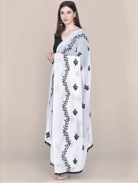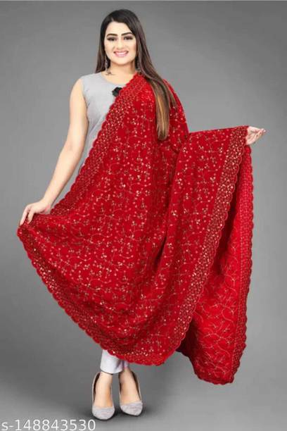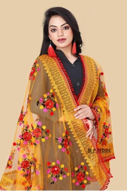 An embroidered dupatta is a great way to complete any ethnic ensemble, such as a salwar kurta set, a sharara set, a lehenga set, or any other such traditional wear. Whether you want a dupatta for daily wear at home, for going out, formal wear, or special occasions, a dupatta with embroidery will never let you down. Dupattas come with narrow embroidered borders, embroidered ends with two side embroidery, all-over embroidery, phulkari work, aari work, hand embroidery, mirror work, gota patti, zardozi, and many more. You can choose dupattas in materials like cotton, net, velvet, chiffon, and nylon from the online store. Some of the latest embroidered dupatta options that you can look at are cotton silk all over embroidered black women dupatta from retailmark1, chiffon phulkari embroidered yellow women dupatta from WEAVERS VILLA, and velvet pink women dupatta from Traditions Bazaar. Net with gold embroidery women dupatta from VIHANI, and chiffon with gold embroidered yellow women dupatta from DUPATTA BAZAAR are ideal for traditional occasions. Check out these and more dupattas from the online stores and pick your favourites. Choose one or more styles of embroidered dupattas online and get your purchases delivered to your doorstep hassle-free. The information you are reading has been last updated on 10-Oct-25.