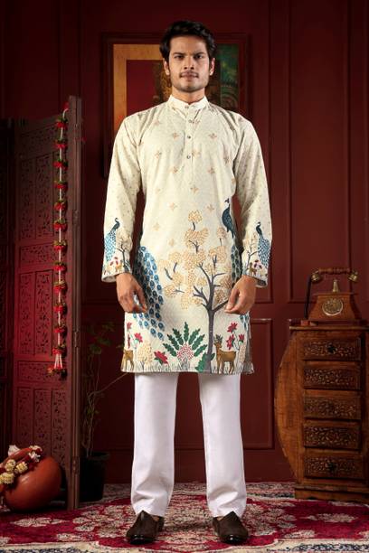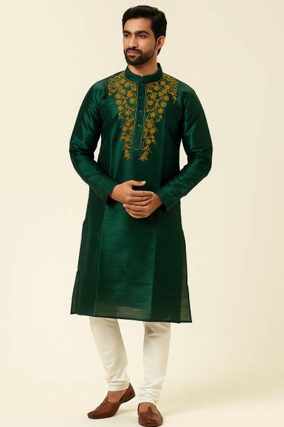 Embroidered men’s kurtas are a popular ethnic wear option. These trendy traditional wear for men are available in a variety of materials like pure cotton, cotton silk, art silk, linen blend, polyester, pure silk, jacquard, and more. To shop for the latest men’s embroidered kurta designs, hop on to your favourite e-store and check out the popular brands. Compare customer reviews, deals, and discounts, and select the ones that appeal the best to you.