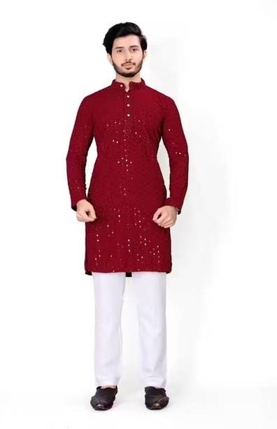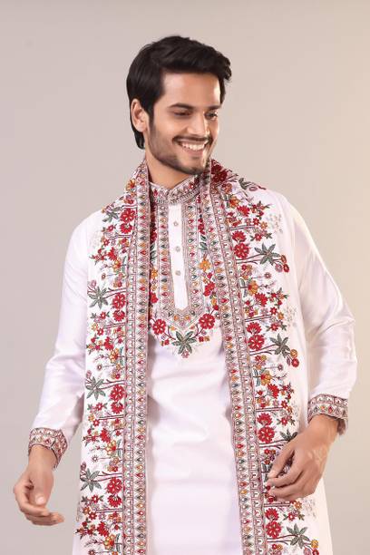 You can pair these embroidered kurtas with different kinds of bottoms like pyjamas, dhotis, slim-fit pants, or jeans. An embroidery work men’s kurta is a must-have item in a man's wardrobe. Pair it with bottom wear of your preference and complete your look with a trendy sandal that complements your outfit.
