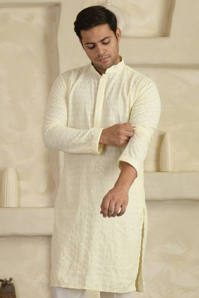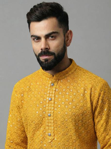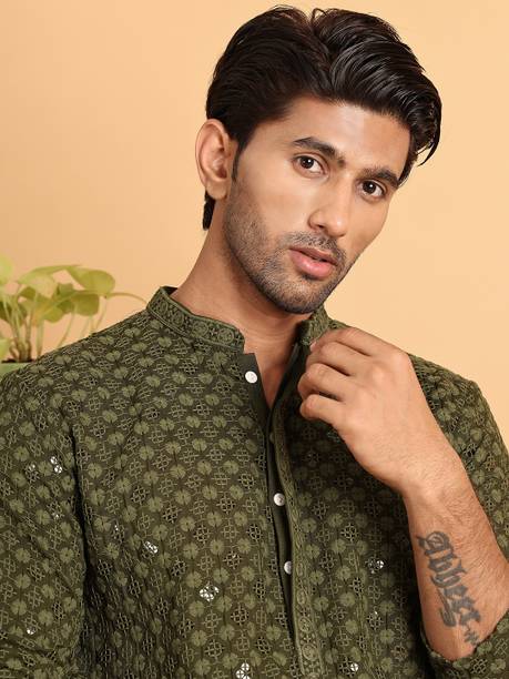 Kurtas are popularly worn by men for casual and formal occasions. Available in several styles like straight cut, front slit, A-line, trail cut, Pathani, Anarkali, high low, asymmetric, and more, kurtas for men are a versatile outfit that can be paired with different bottoms. An embroidered men’s kurta is a classy piece that can instantly give you a sophisticated and elegant look. An embroidered kurta is one of the most popular ethnic outfits for weddings, parties, and other formal occasions. There are different types of Indian embroideries like Kutch, Chikan, cutwork, Kantha, mirror work, Kashmiri, zardosi, Phulkari, and gota work.