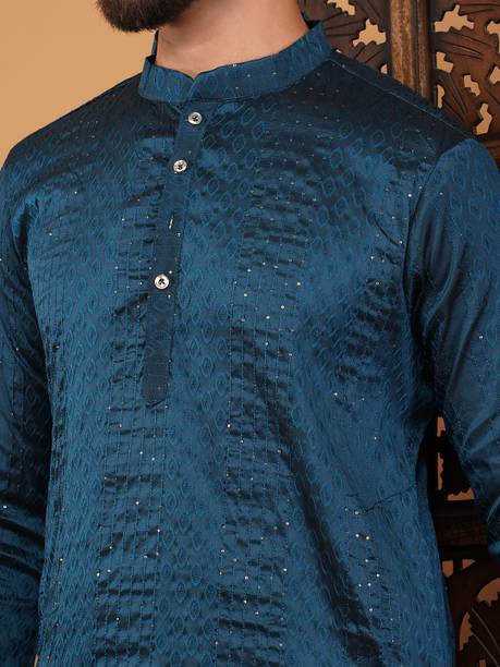Kurtas for men are available in a variety of patterns like embellished, printed, checkered, solid, self-design, paisley, floral print, patchwork, striped, textured, embroidered, and more. If you are looking for embroidered men’s kurtas for yourself or your loved ones, several popular brands offer the latest men’s embroidered kurta designs at online stores. Brands like House of Pataudi, Indus Route by Pantaloons Jompers, Manyavar, Dolphin Miles, and more have a variety of embroidery work men’s kurtas that you can choose from. Browse online and check out embroidered kurtas for men.