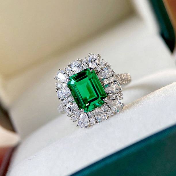 Emerald rings are available in different materials, like acrylic, alloy, brass, bronze, copper, and enamel. The material is crucial as it determines shine and color of the ring. The green hue of emerald complements most metallic colors making it a favorite gemstone among many women as well as men.